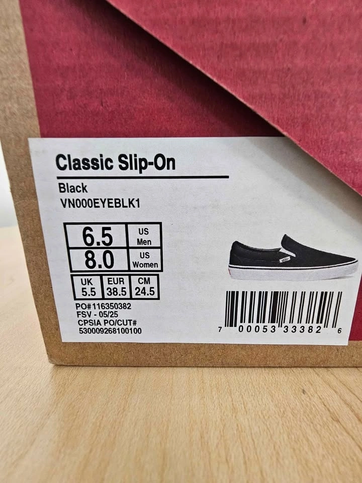 BNIB Vans Classic Slip-On Shoes Black M-6.5 or W-8
