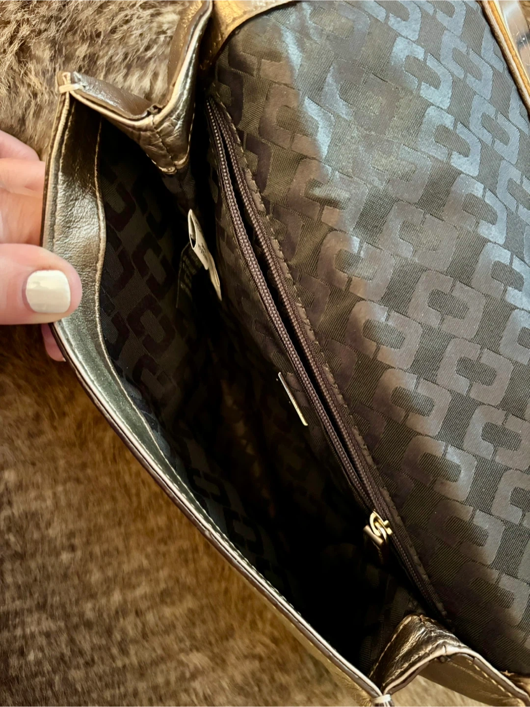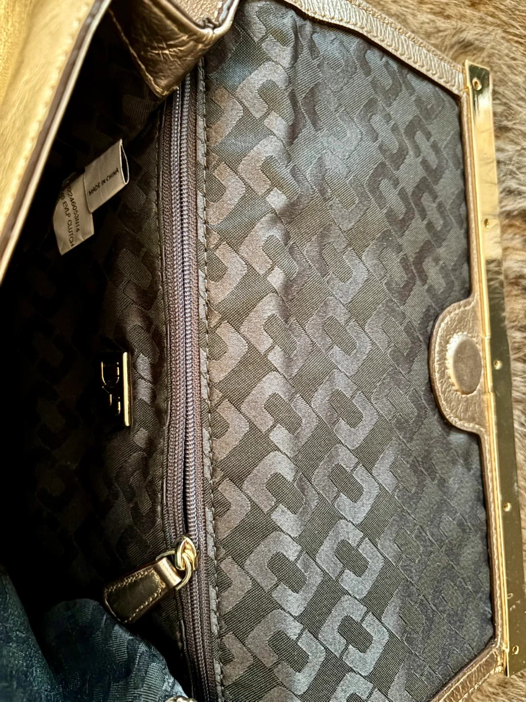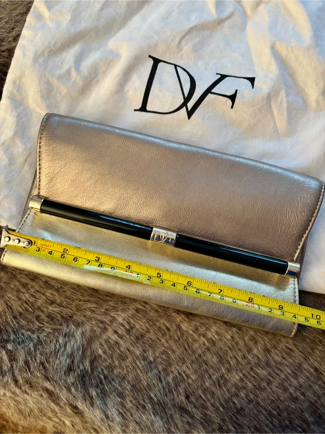 Diane von Furstenberg (DVF) clutch, magnetic closure, zipper pocket on the inside, and the outside has a pocket for your phone. It's a stylish accessory to complete your outfit. The clutch is in good condition and comes with a dust bag for storage. Authenticity label sewn on the inside of the clutch.