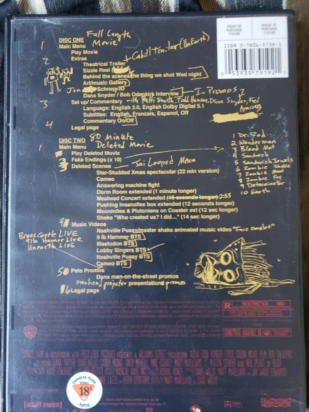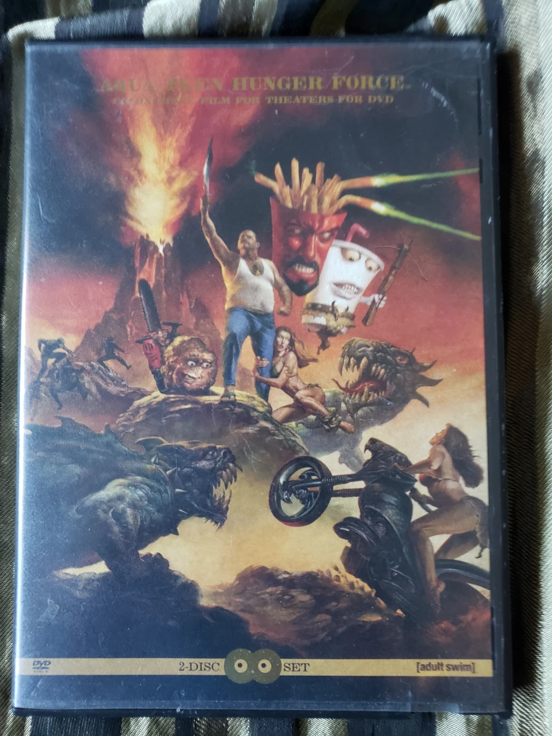 This is the 2-disc DVD set for Aqua Teen Hunger Force, Volume One. It includes the full-length movie, deleted scenes, and music videos. Also features behind-the-scenes content and promotional material.