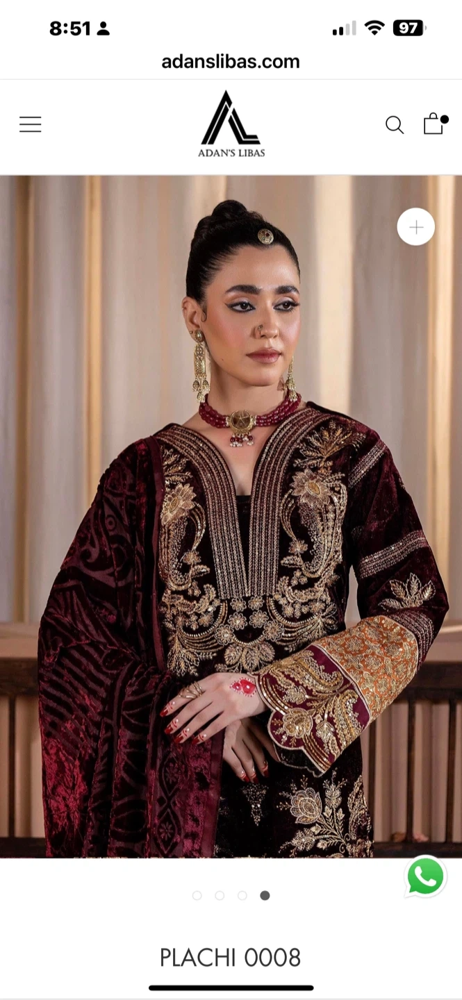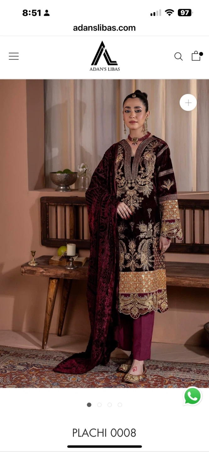 New Adan's Libas Embroidered Velvet Dress with Shawl