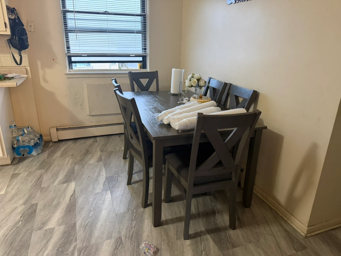 Woodgrain Dining Table with 4 Upholstere Chairs