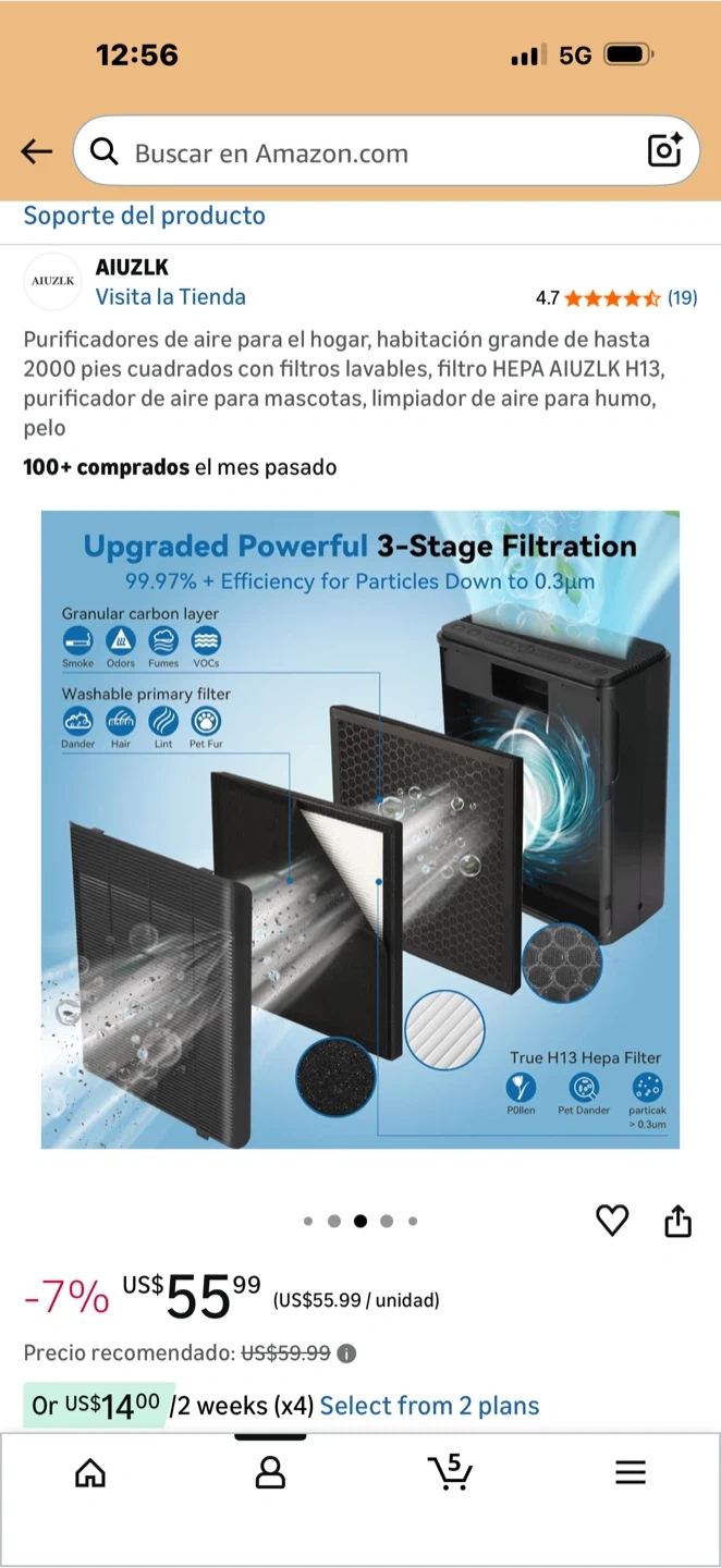 This AIUZLK air purifier features a 3-stage filtration system including a HEPA H13 filter. It's designed for rooms up to 2000 sq ft. Its quiet operation makes it ideal for bedrooms.
