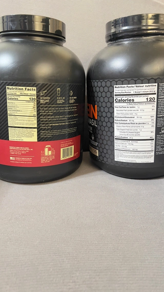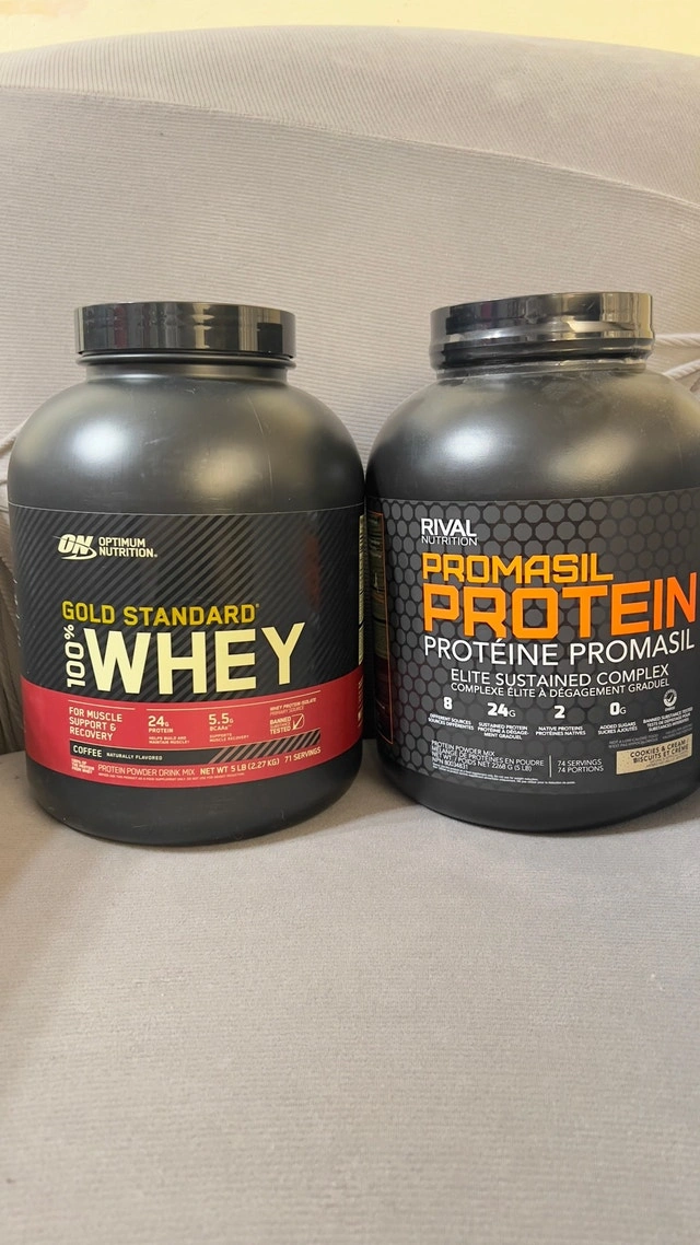 Selling two brand new, sealed containers of protein powder: Optimum Nutrition Gold Standard 100% Whey and Rival Promasil Protein. Perfect for boosting your protein intake. Condition as shown in photos. Optimum Gold $100, Promasil $100. If the ad is up, the protein is available.
