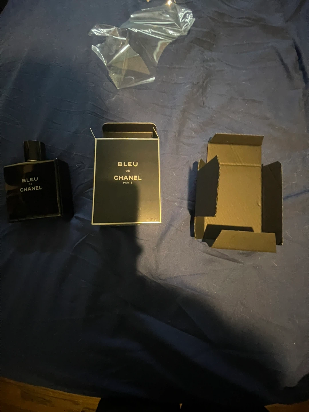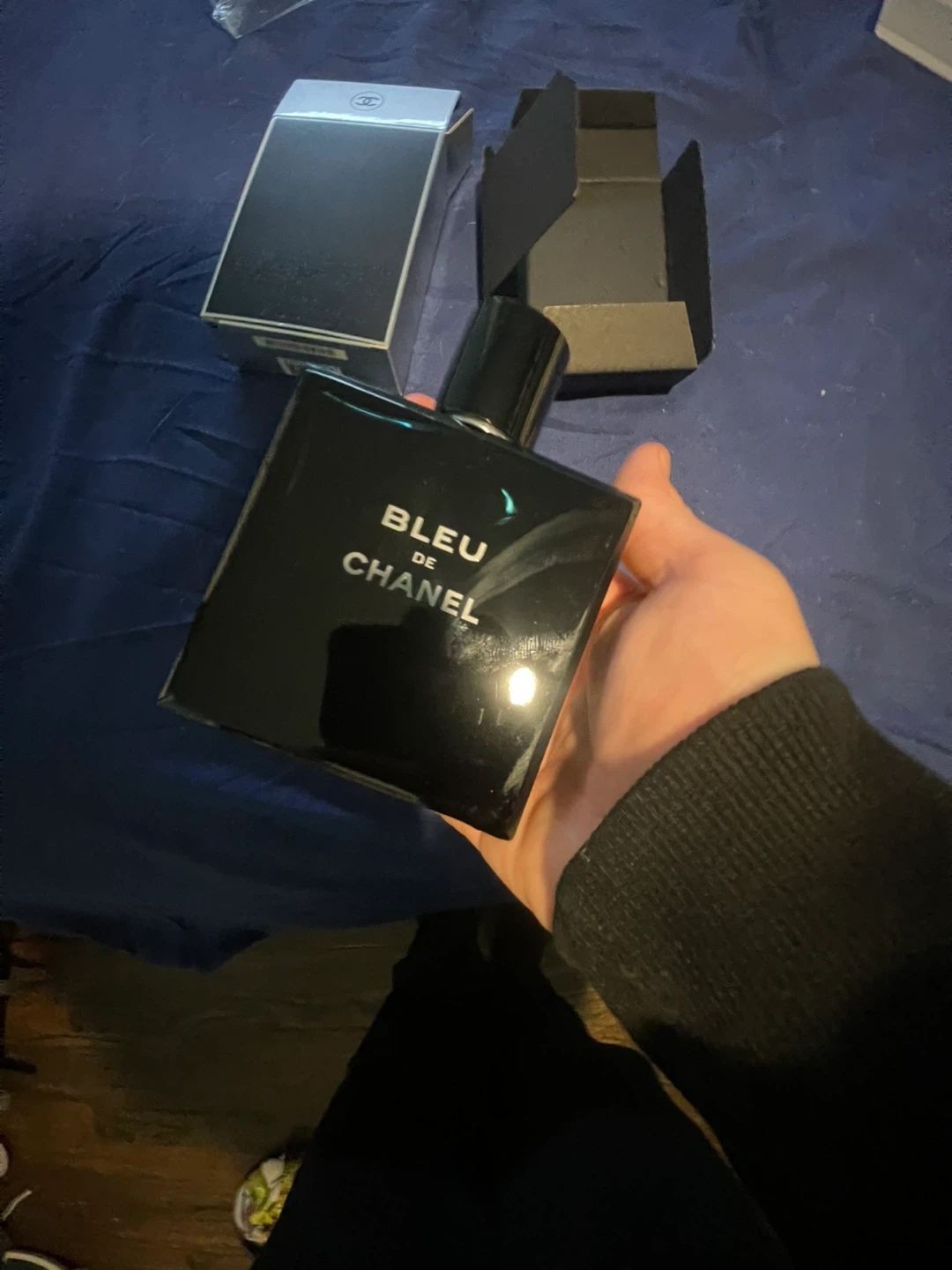 This is a bottle of Bleu de Chanel Eau de Parfum for men. It's the 3.4 oz size. Comes with the original box. The fragrance features citrus and woody notes.