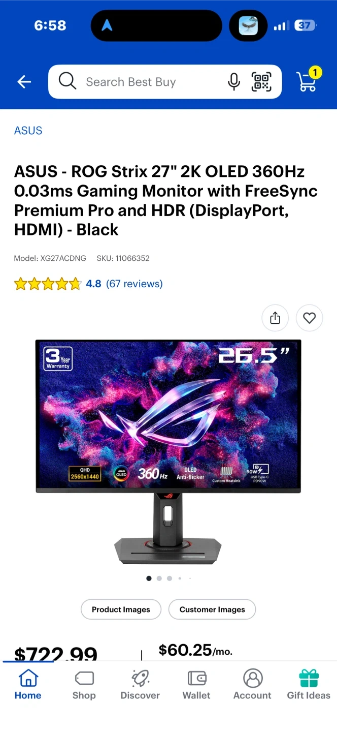 ASUS ROG Strix XG27ACDNG 27" OLED Gaming Monitor