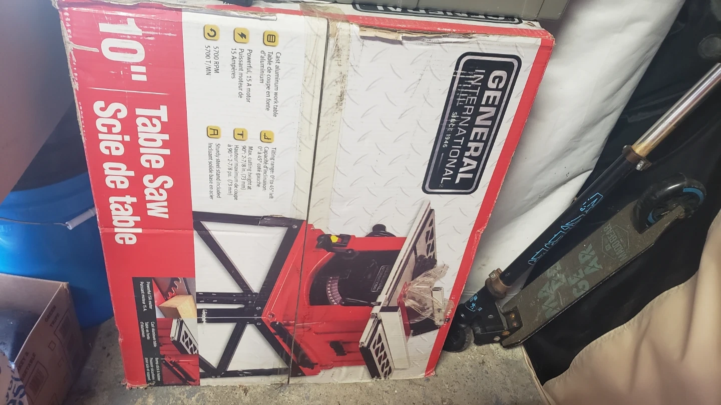 15Selling a General International 10" Table Saw. It features a cast aluminum work table and a powerful 15A motor. The tilting range is 0° to 45° left, and the max cutting height at 90° is 2-7/8 in (73 mm). It also includes a sturdy steel stand