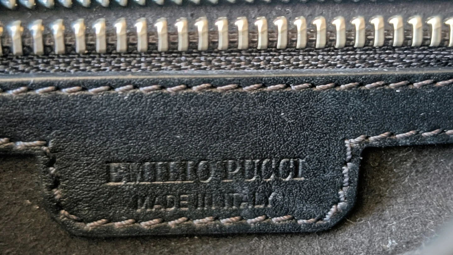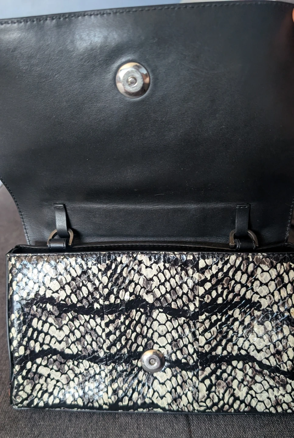 Chic Emilio Pucci shoulder/crossbody bag featuring a striking snakeskin print. It's made in Italy and has a secure snap closure. This bag's bold design makes it a statement piece!