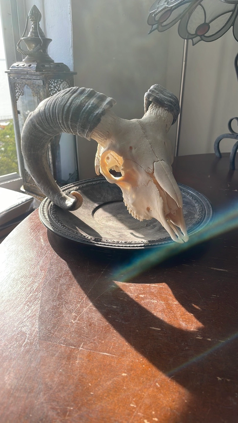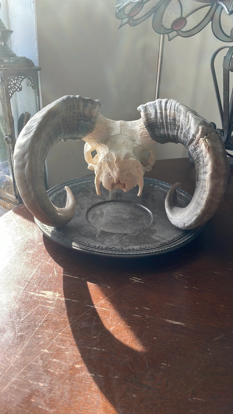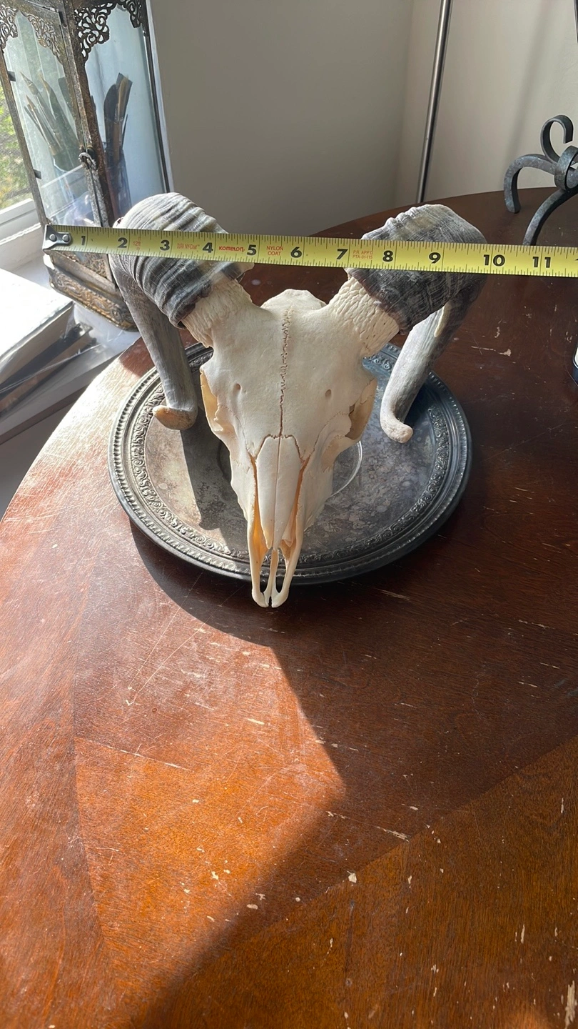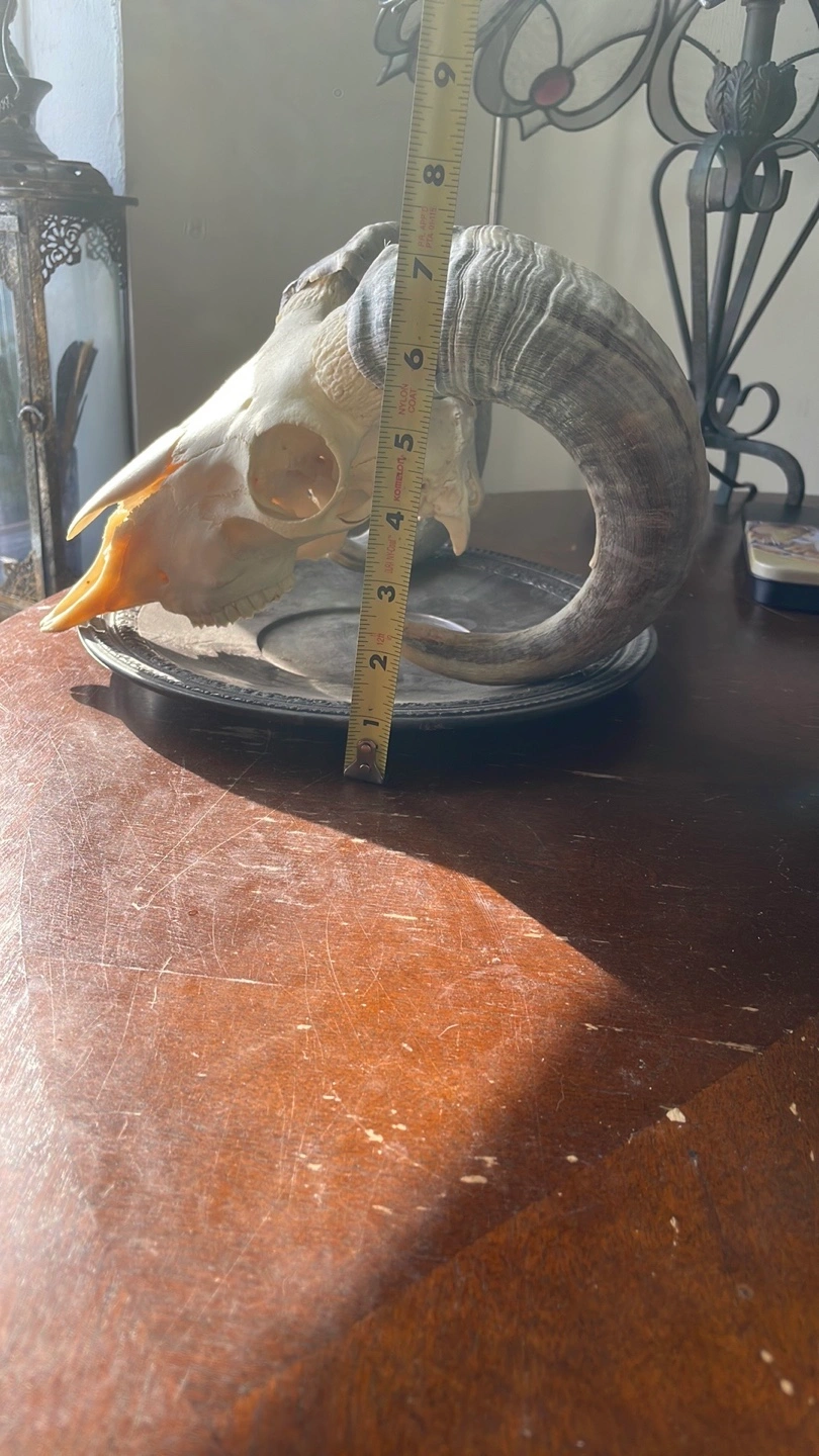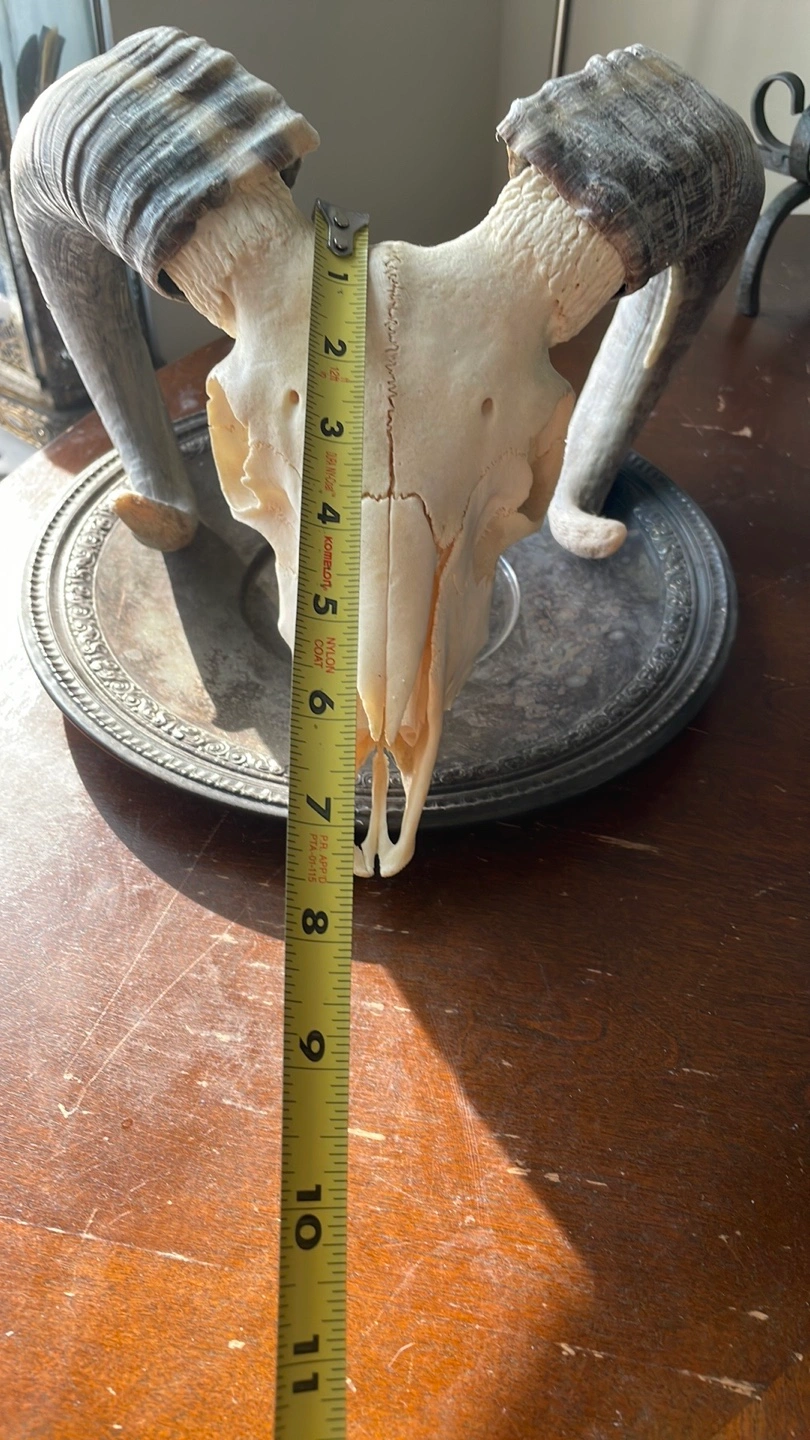 Selling a ram skull. Photos with a measuring tape for approximate size. Great Halloween decoration, or an addition for your taxidermy goth home collection. Selling because of move. Originally got if off a ethical taxidermy seller for $250. Does not come with the plate in the photos.