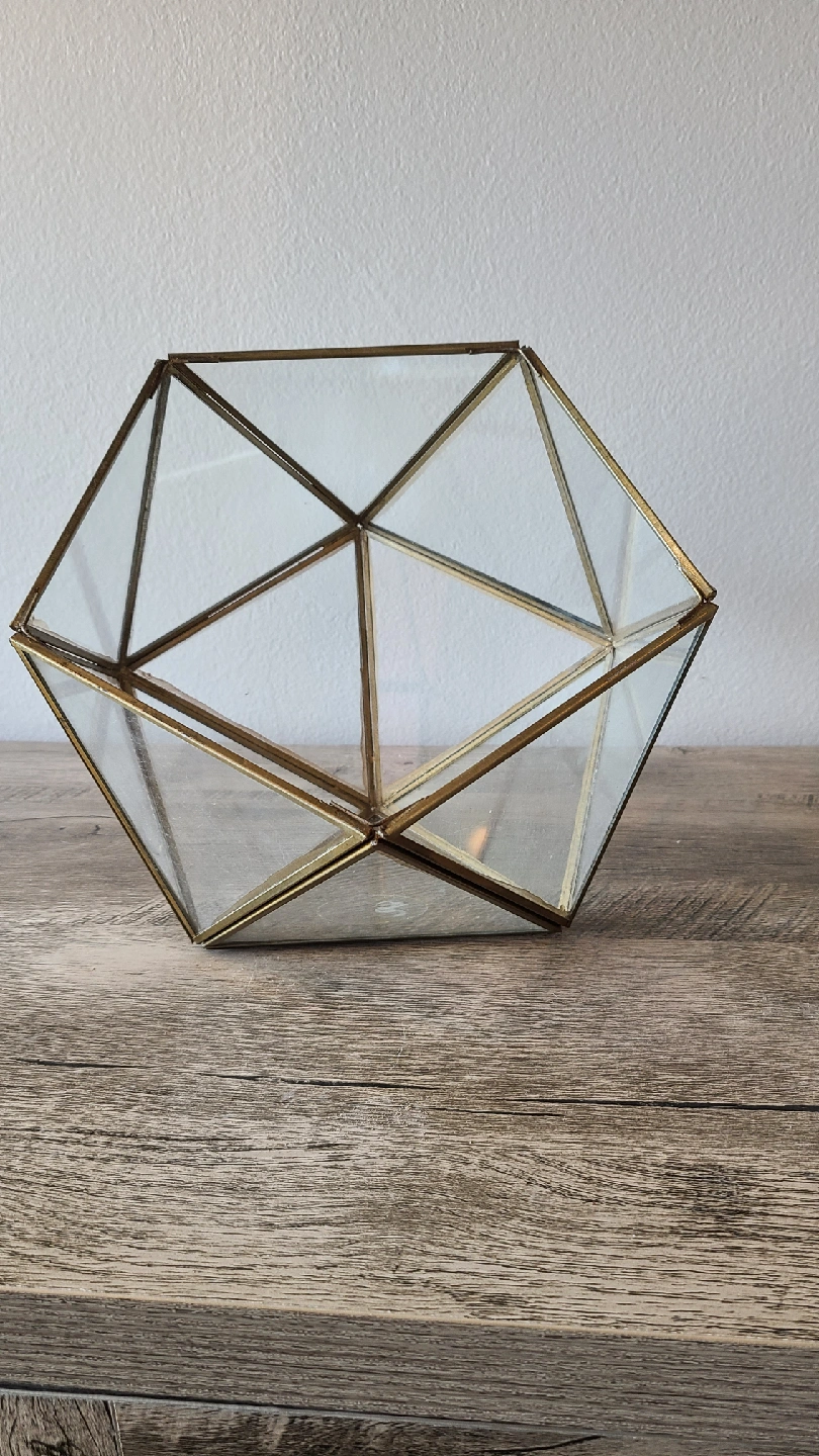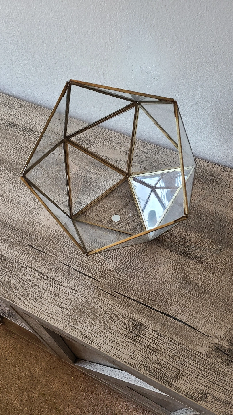 Selling a geometric terrarium! It's a stylish way to display plants or other decorative items. It's in great condition and ready to add a modern touch to your space