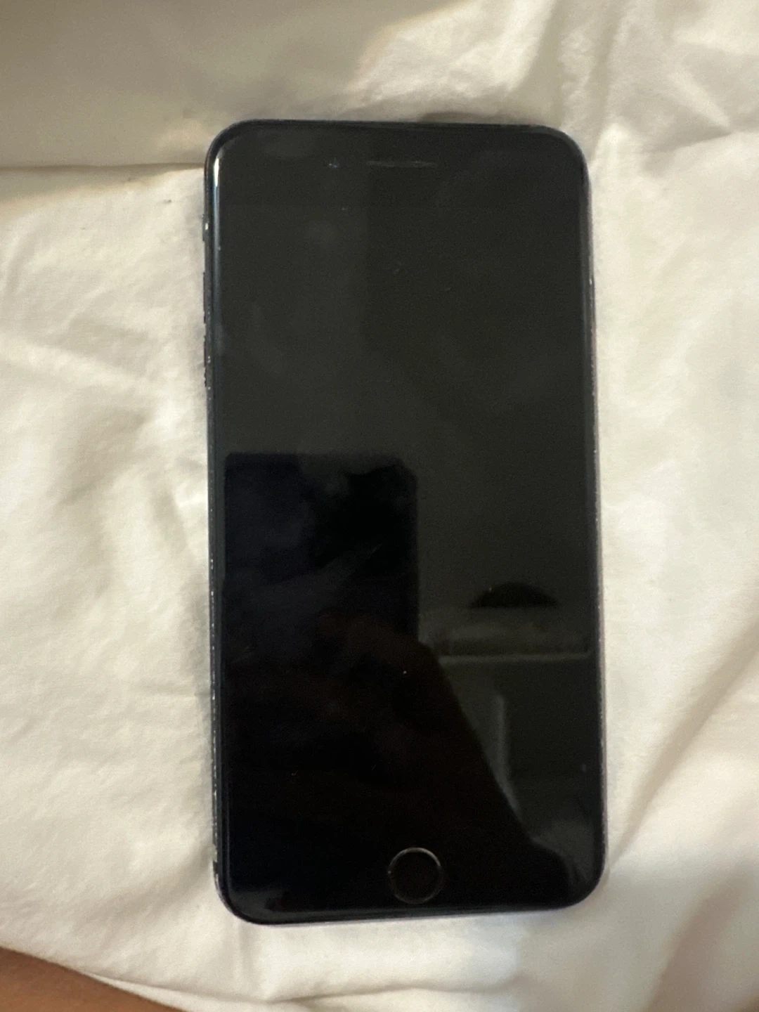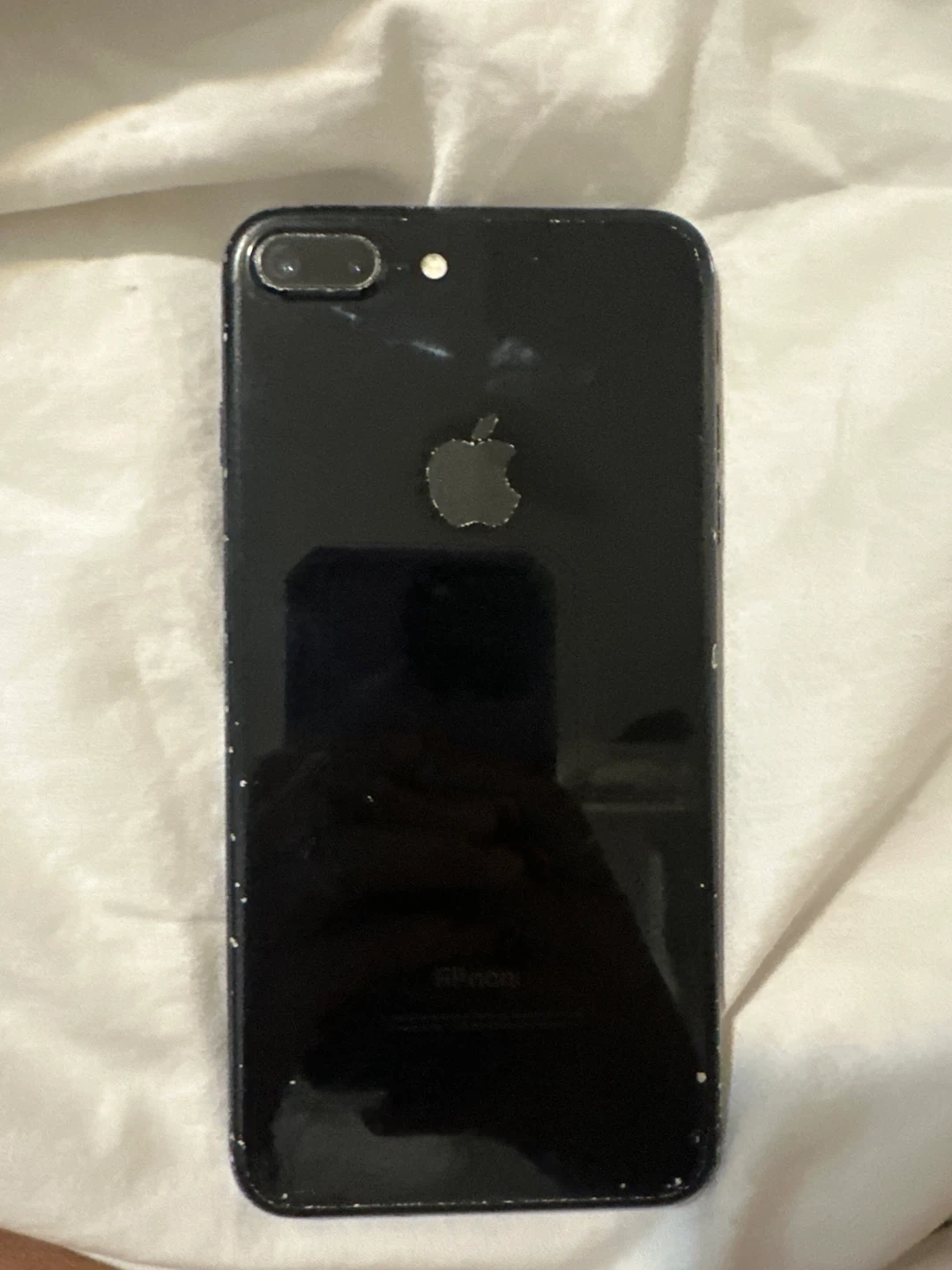 Black Apple iPhone 7 Plus. It's a smartphone with a 5.5-inch display. Runs on iOS. Has a single rear camera and a front-facing camera. Does not work maybe can be used for parts