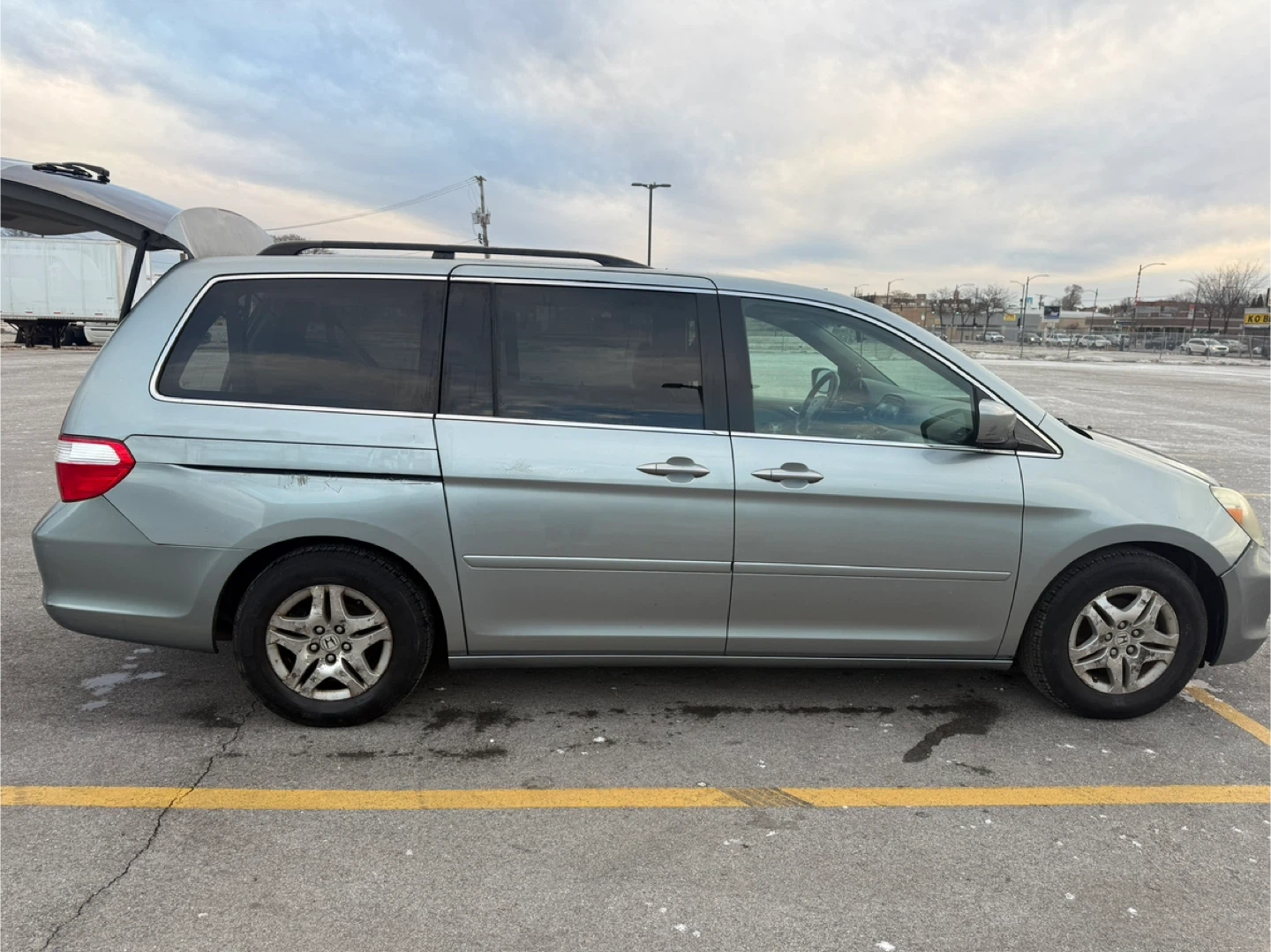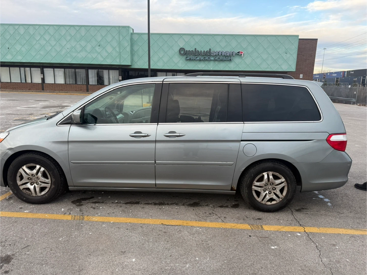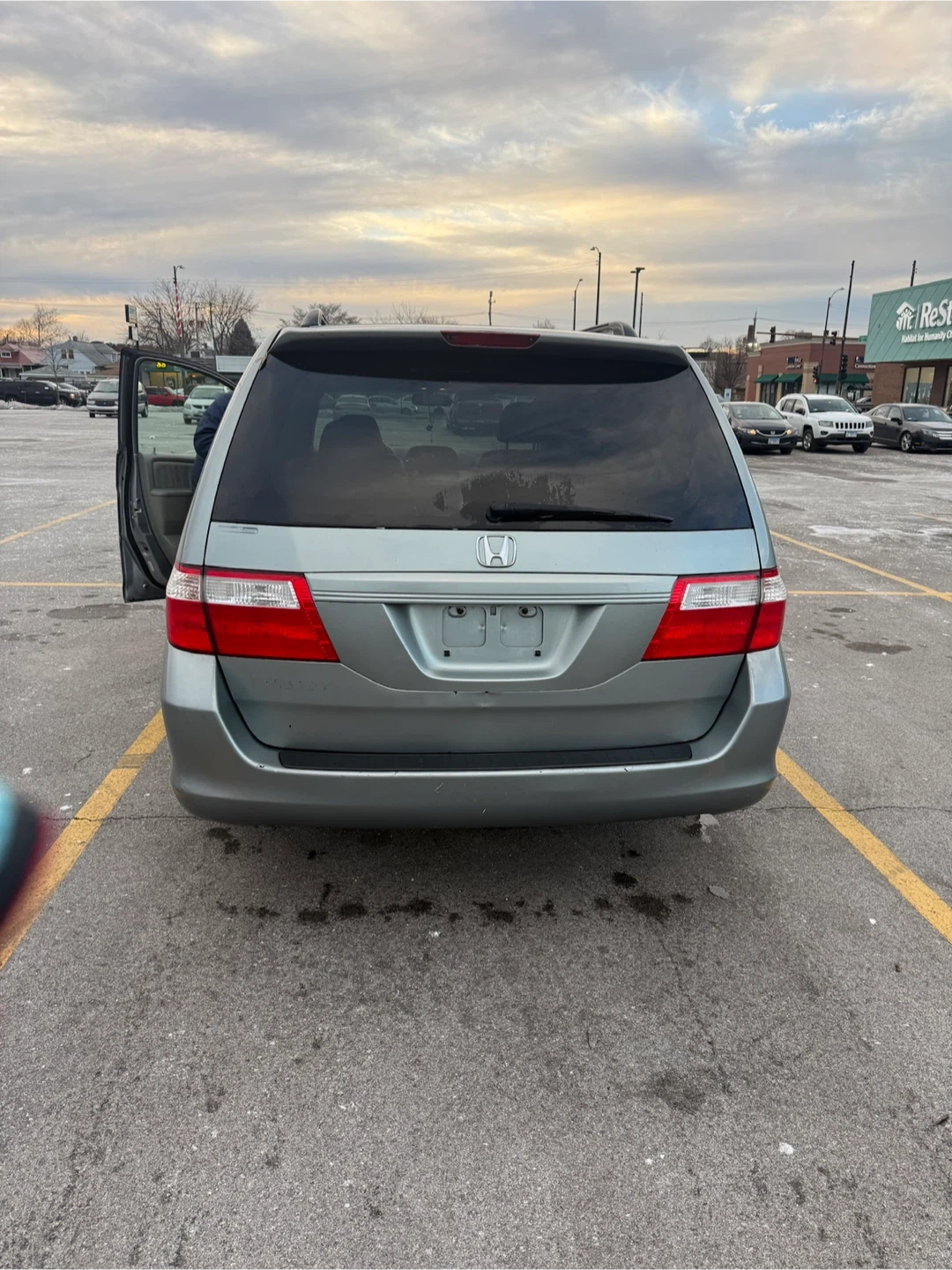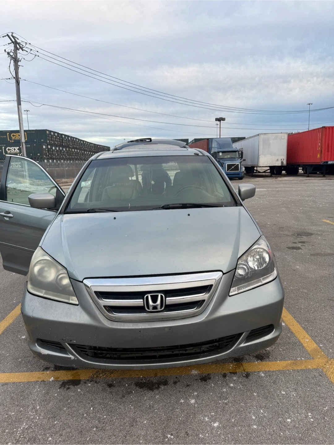 This is a silver Honda Odyssey minivan. It's a 2008 model. It has a 3.5L V6 engine. The third-row seating is folded down for extra cargo space. 3,200 or best offer