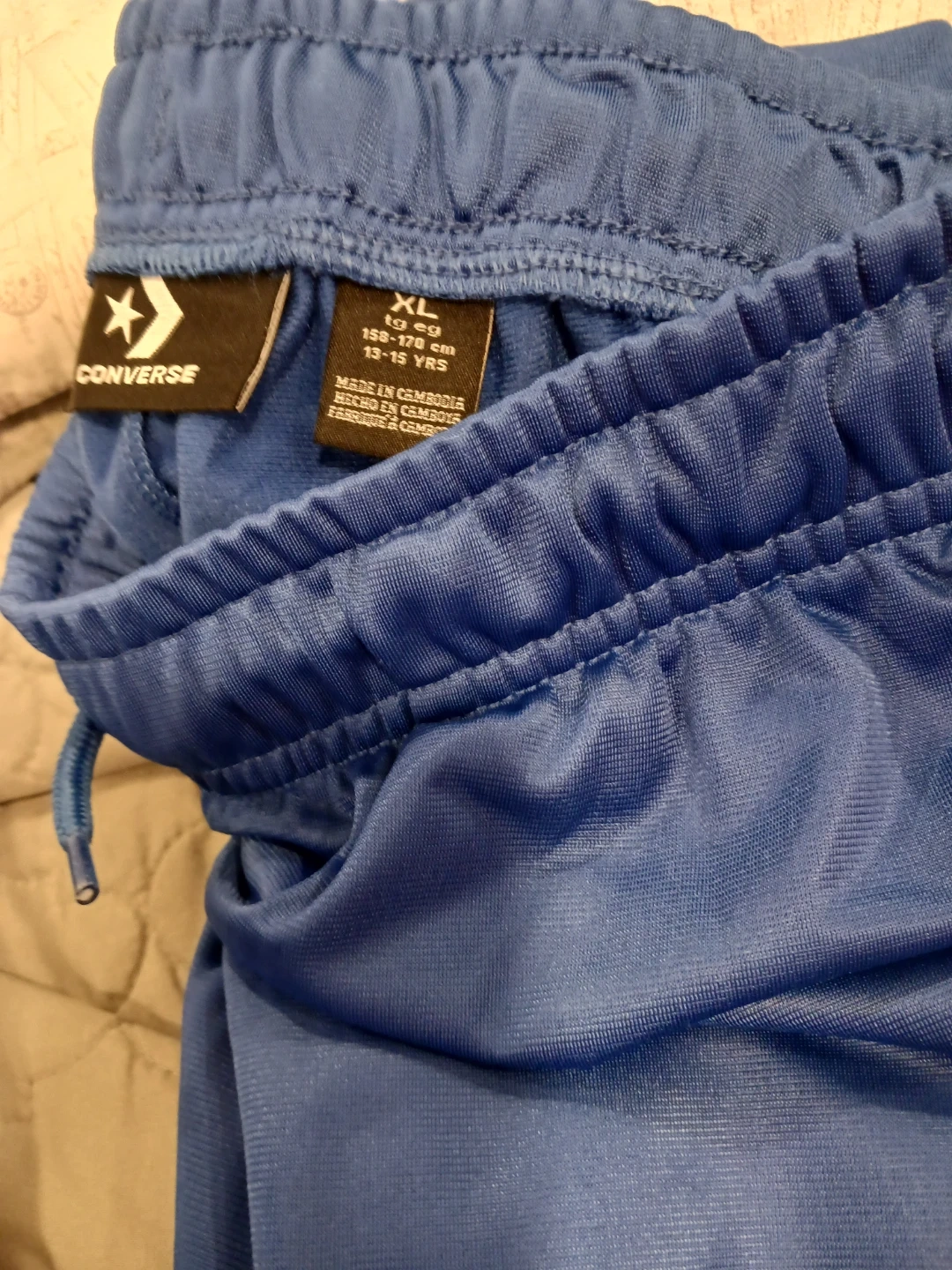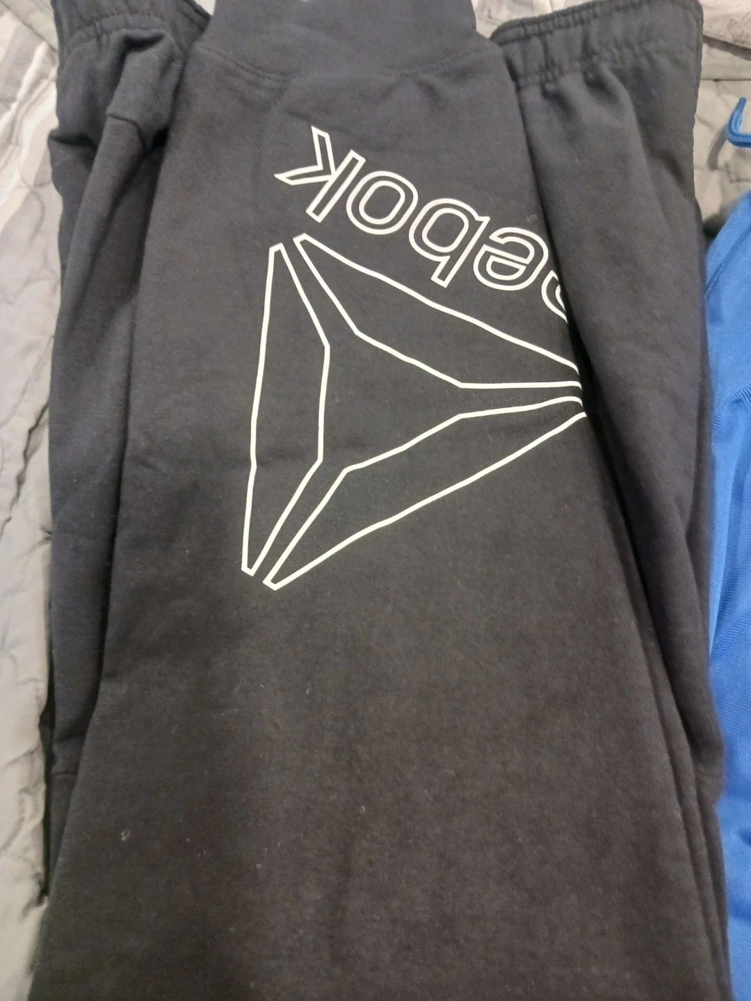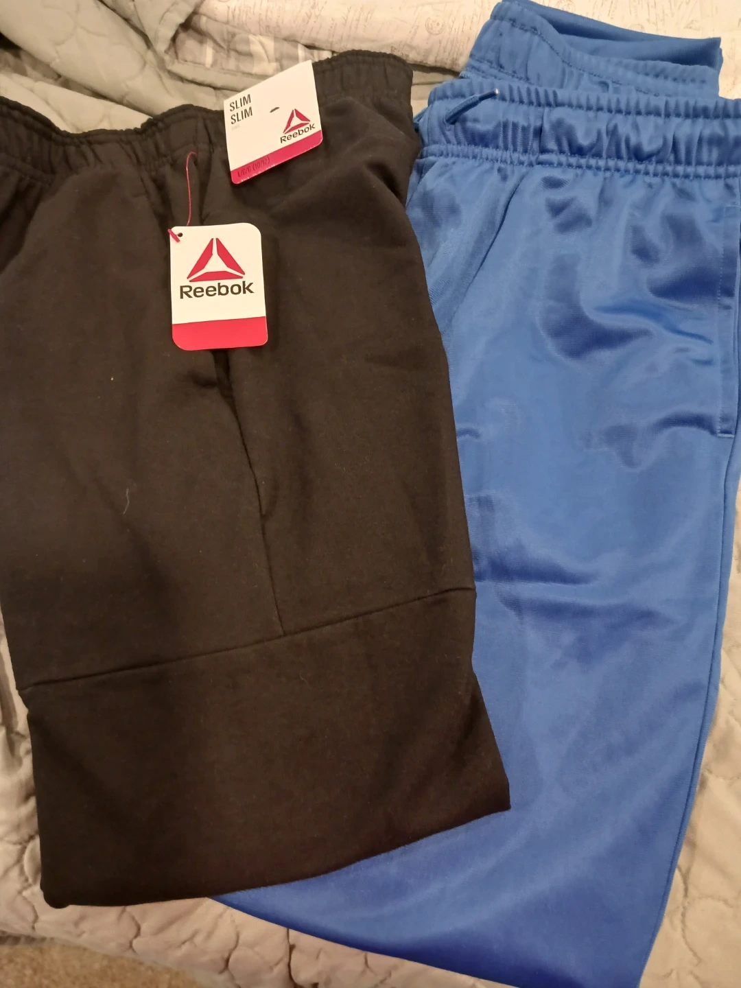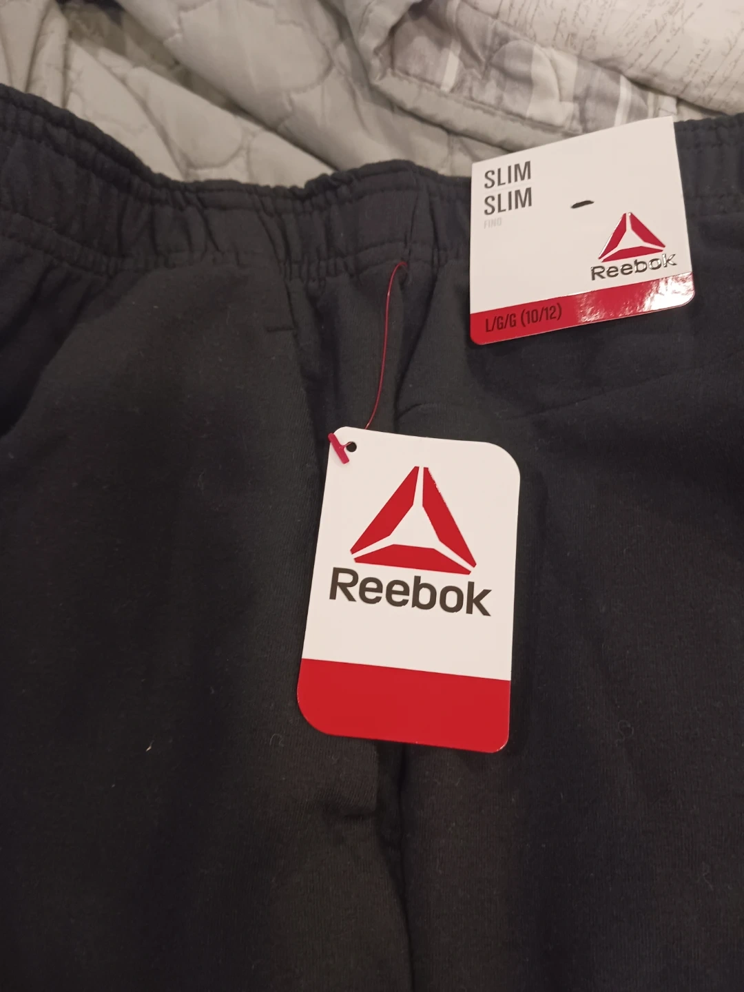Reebok black slim fit joggers in size L/G (10/12). These joggers feature the iconic Reebok logo. Also includes Converse All Star blue athletic pants, size XL (158-170 cm, 13-15 yrs).