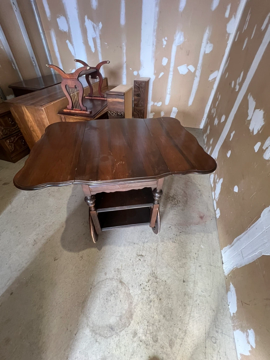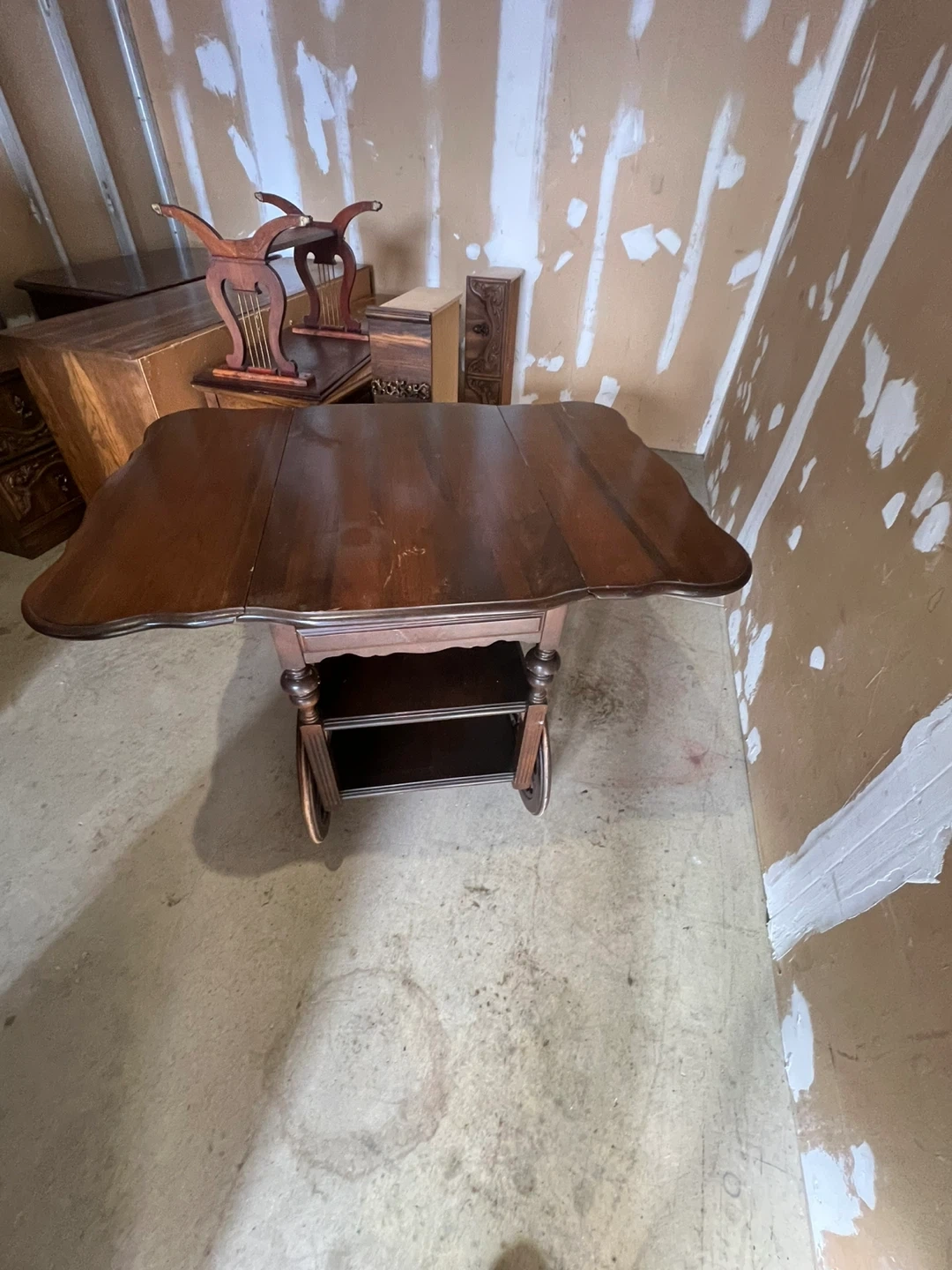 Free delivery antique Wooden Drop Leaf Serving Cart with Wheels
