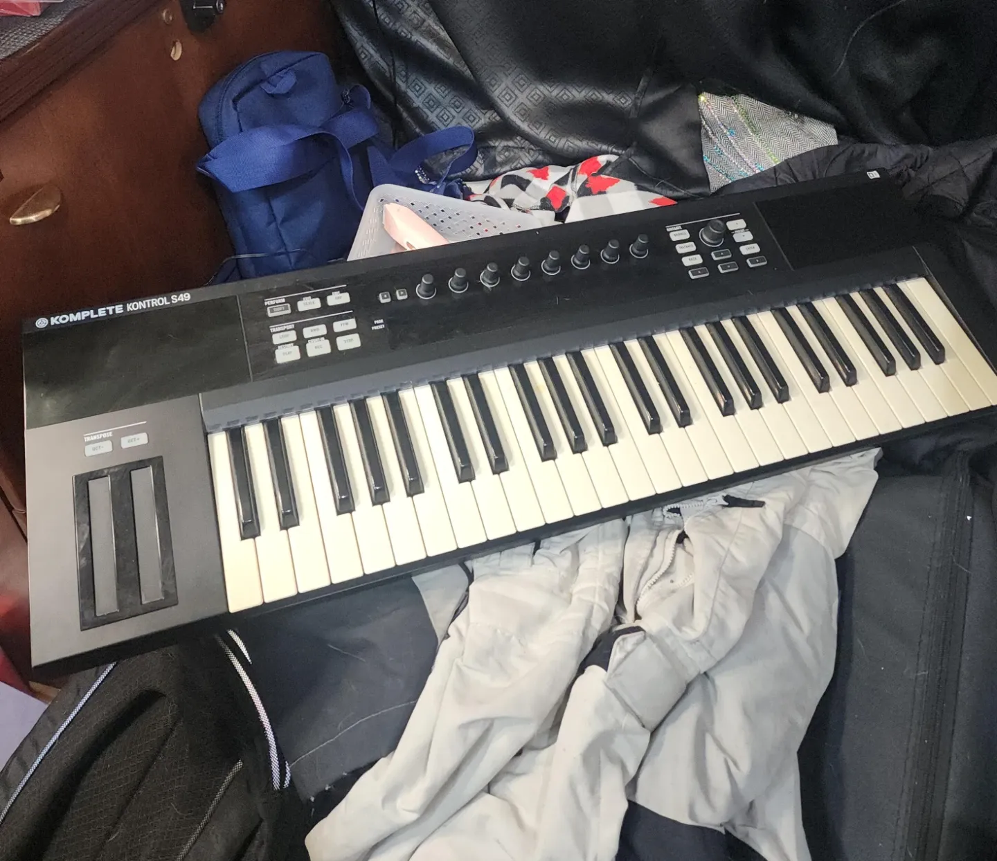 This is a Native Instruments Komplete Kontrol S49 MIDI keyboard. It features 49 keys and various control knobs and buttons for music production. Great for producers and musicians!