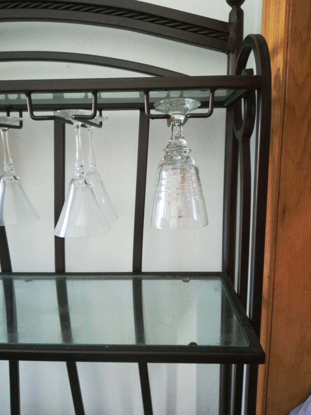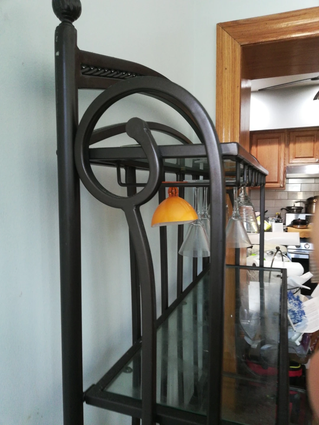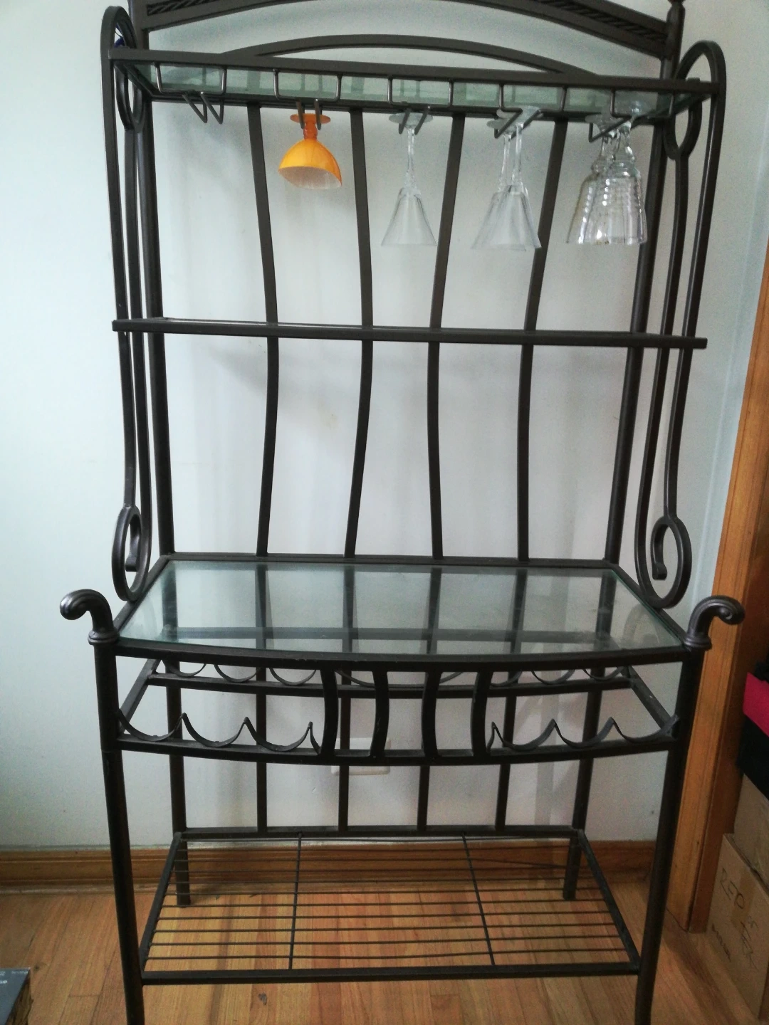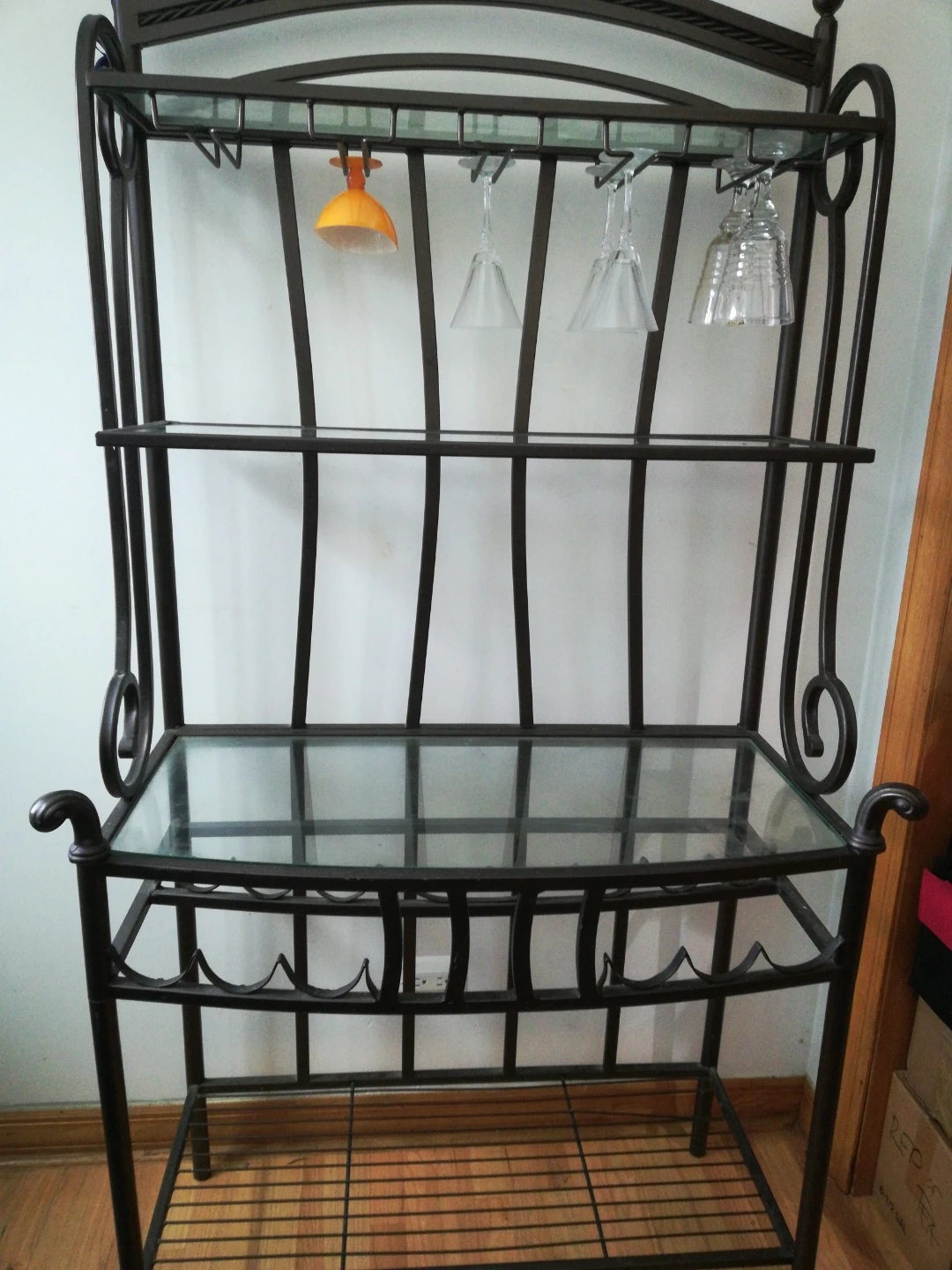 Selling a metal and glass bakers rack that also doubles as a wine rack! It's in good condition and would be perfect for adding some extra storage and style to your kitchen or dining area
