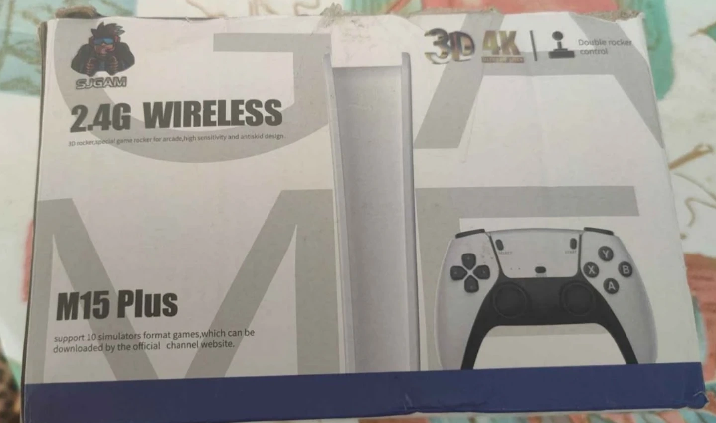 This is the SJGAM M15 Plus 2.4G wireless game controller. It features a 3D rocker with high sensitivity and an antiskid design. It supports 10 simulator format games that can be downloaded from the official channel website.