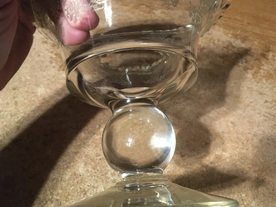 Vintage depression gazebo Etched Glass footed candy dish