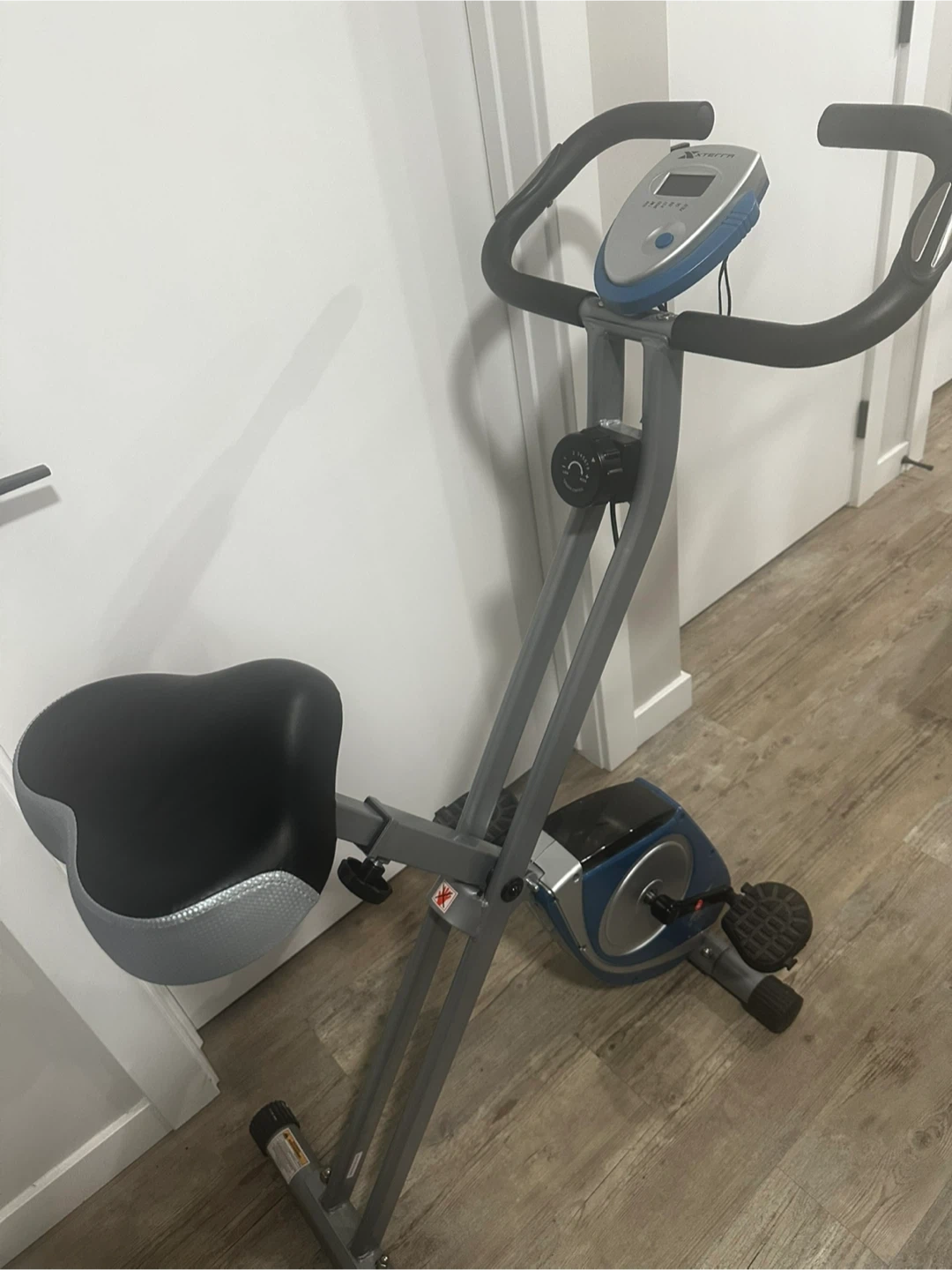This folding exercise bike is great for a home workout. Easy to store.