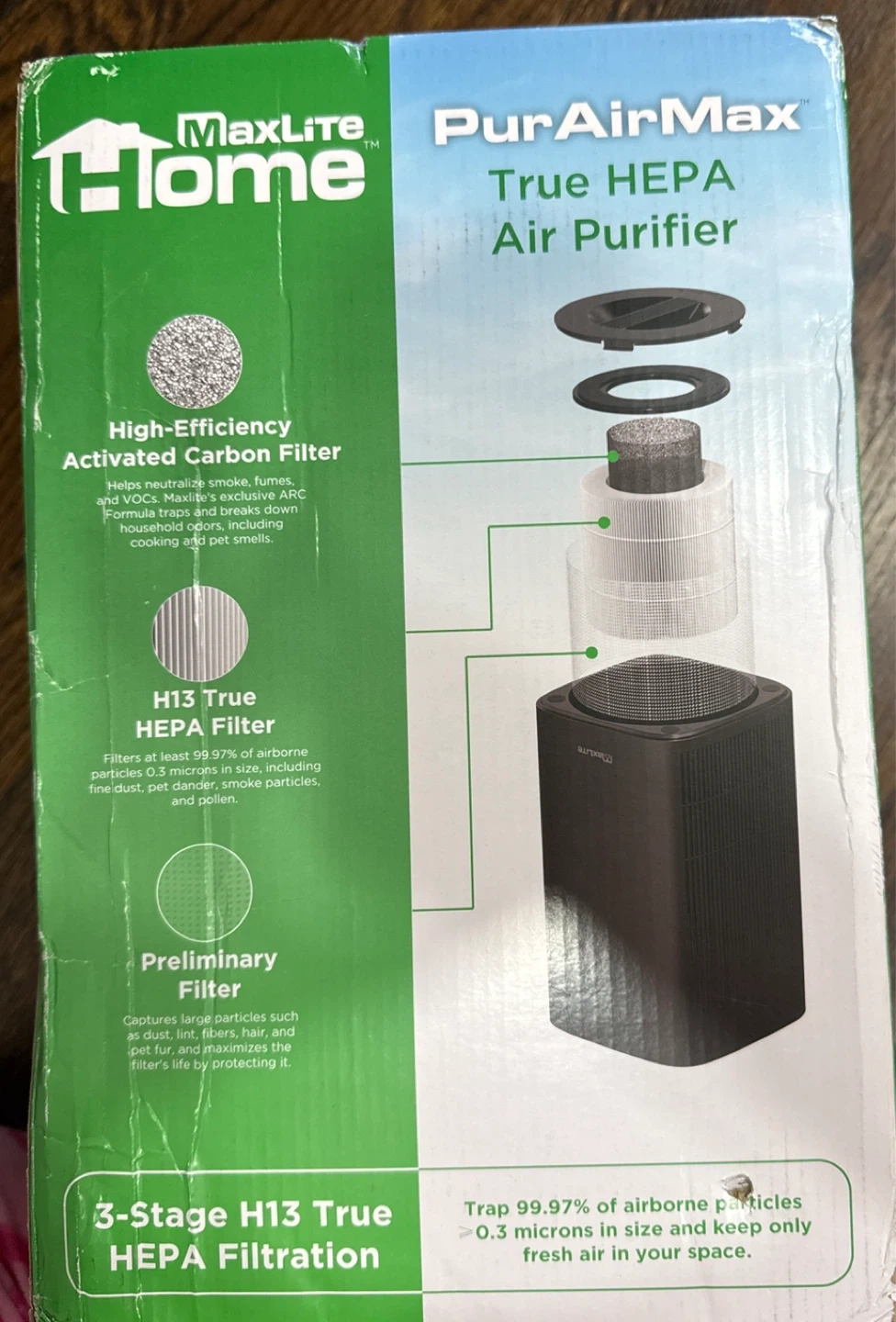 MaxLite Home PurAirMax True HEPA Air Purifier 1090 sq ft