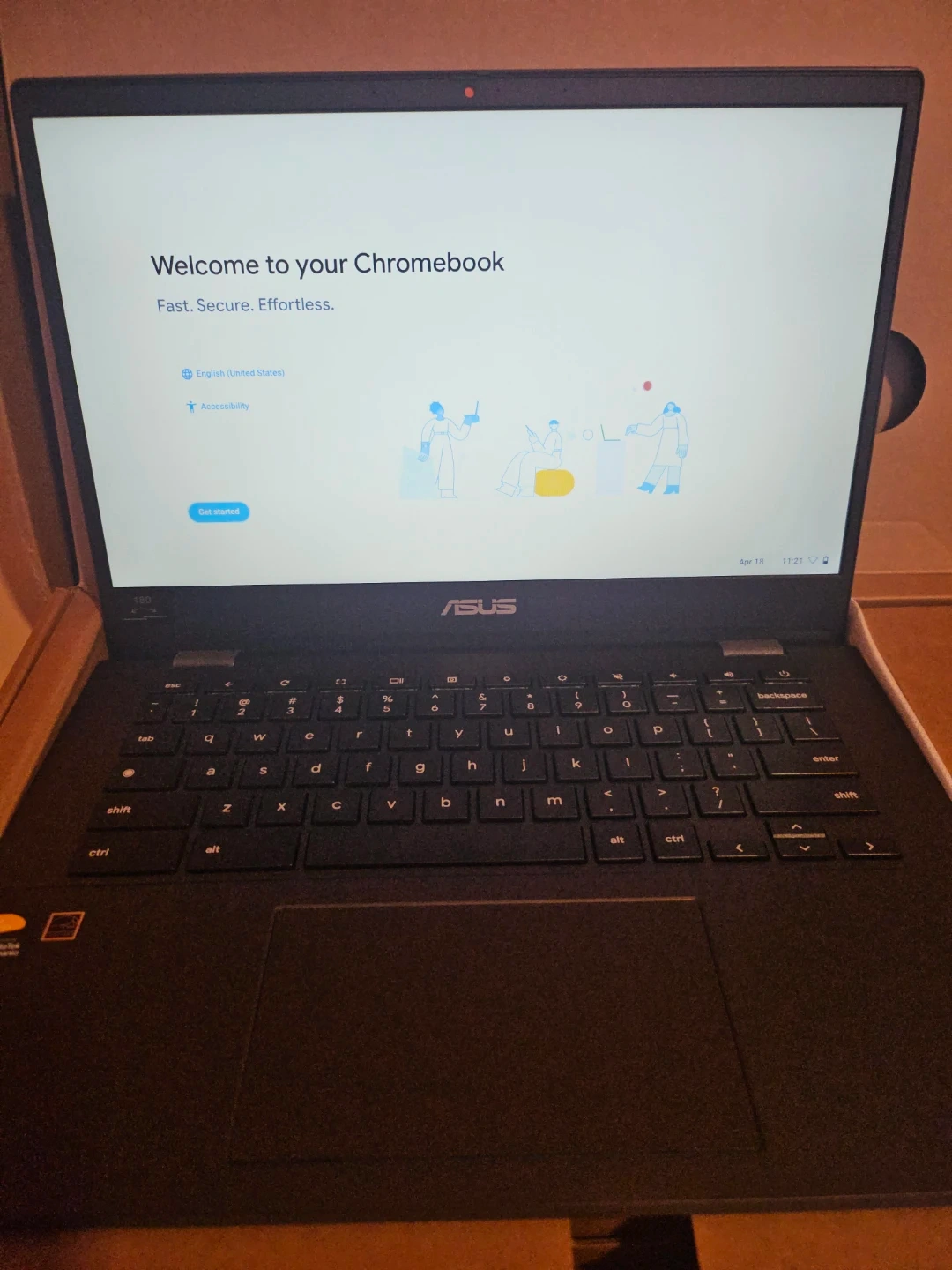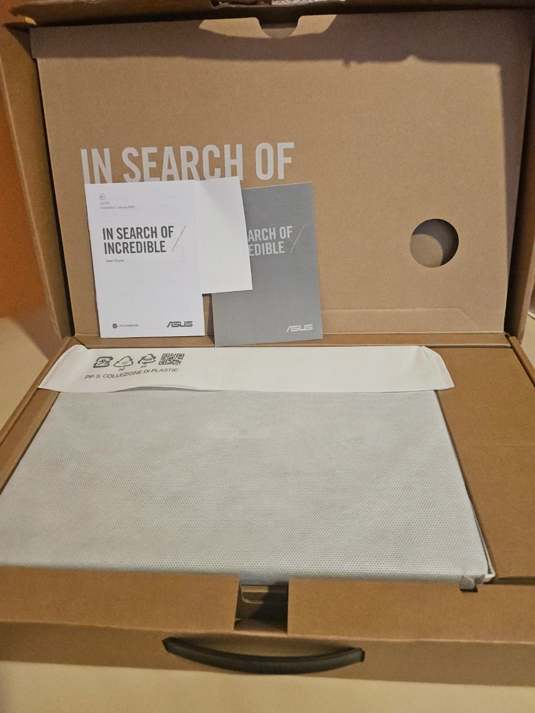 This ASUS Chromebook is in its original packaging. Includes user guide. Fast, secure, and effortless computing. The MFD date is 2023 July.