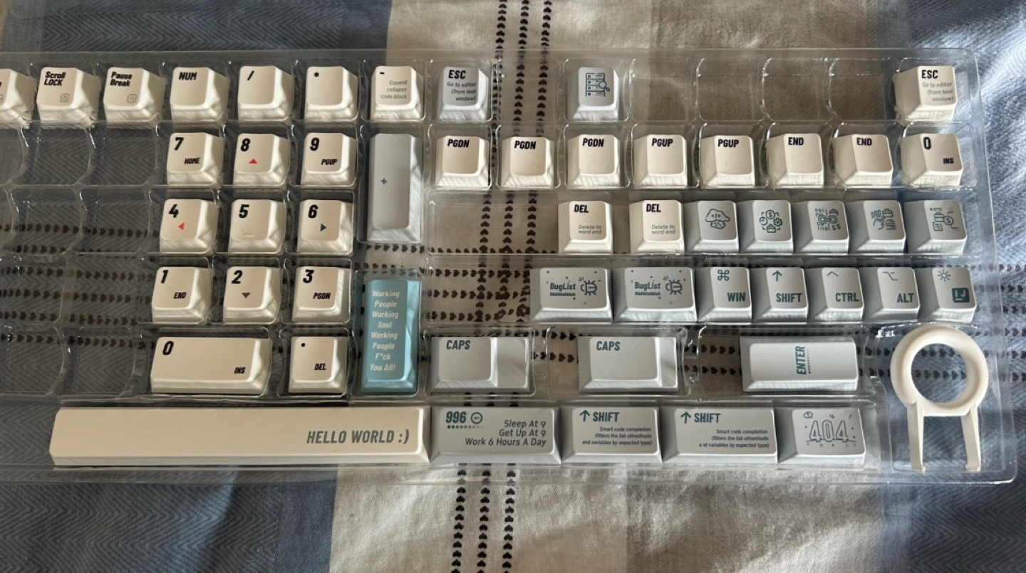 Comes with MMD princess v3 tactile switches and full set of 129 key programmer themed pbt keycaps. Stabilizers have been tuned and keyboard comes with full foam configuration. Lightly used for a few weeks.