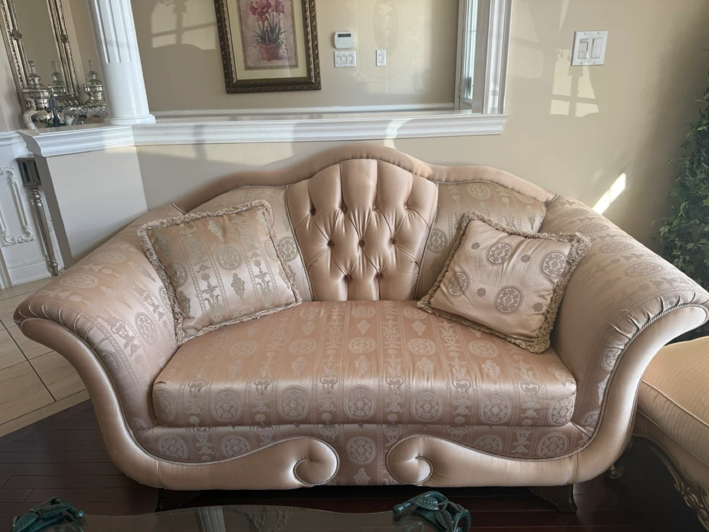 Ornate Tufted Loveseat with Decorative Pillows