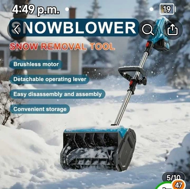 Come and get it! I am selling a brand new (in box) snow blower, perfect for clearing walkways and small driveways with ease. This compact and lightweight tool features a 21V battery, making it easy to manoeuvre. Its innovative design allows for efficient snow removal, so you can quickly tackle winter's frosty challenges. Key features: Brushless motor for enhanced performance, Adjustable snow removal direction up to 45 degrees, Lightweight and detachable design, Cordless design ensures ease of use. This snow blower is a game-changer! If the ad is up, it's available. Cash and cashless payment accepted.