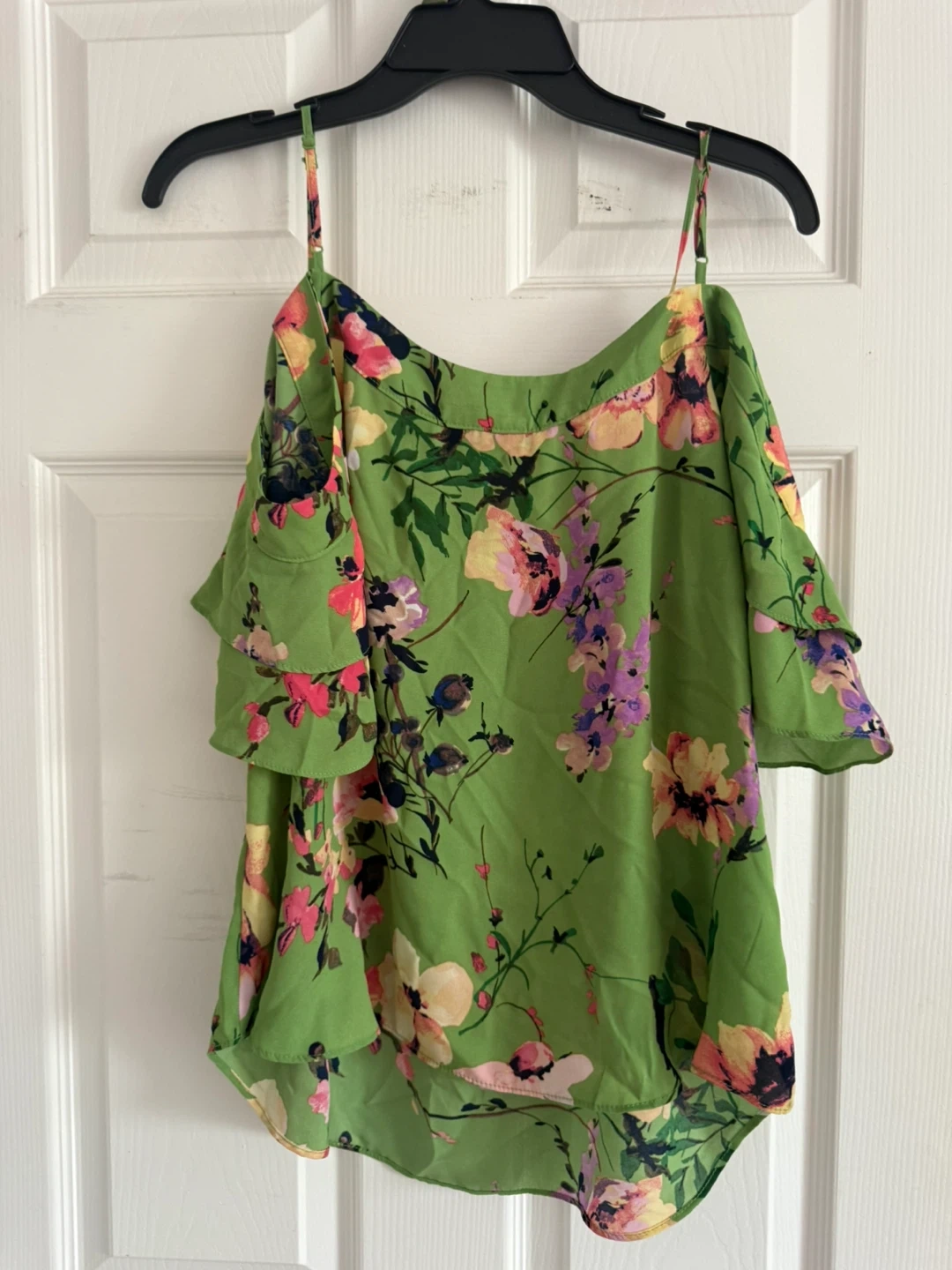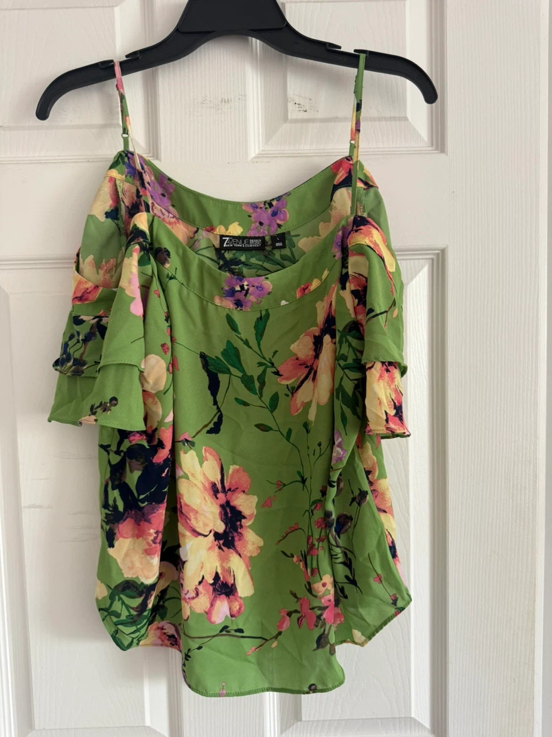 Selling a cute cami from 7th Avenue Design Studio! It's a size large and features a beautiful floral pattern on a green background. Perfect for summer!