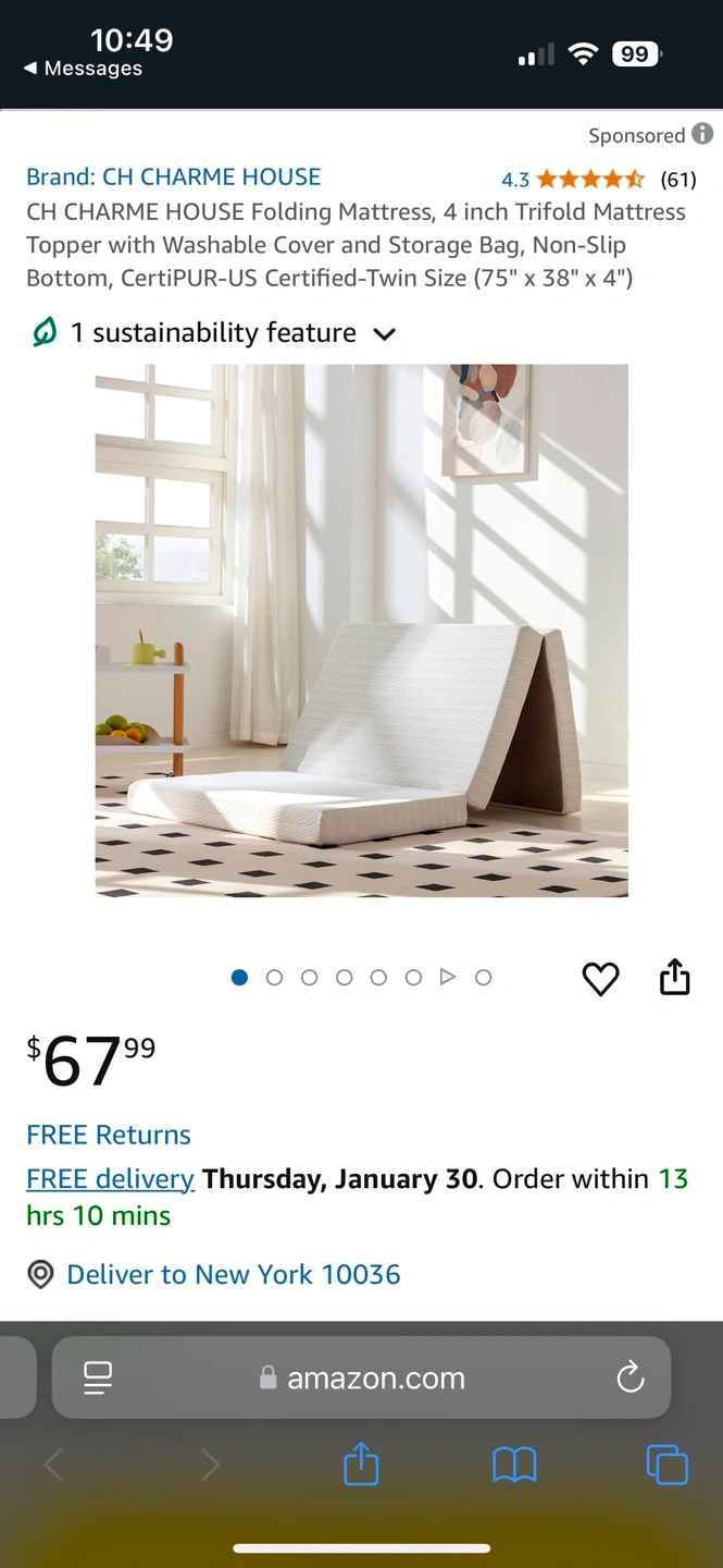 Folding mattress with washable coverNon-slip bottom. Twin size. 2 for 35 $ ( used it for 3 weeks untill i got the new mattress)