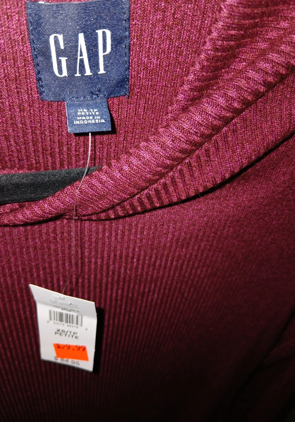 This is a Gap ribbed mock neck sweater dress in burgundy. It's a size XS/TP Petite & It's made from a comfortable & stretchy ribbed knit fabric. NWT, never worn.