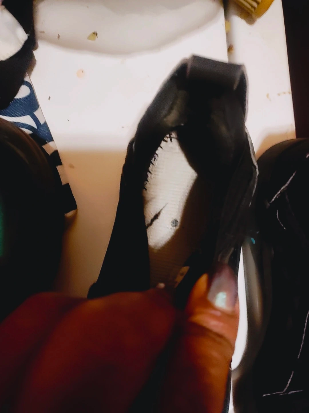 Some signs of wear..msybe could be play sneakers or shelter.