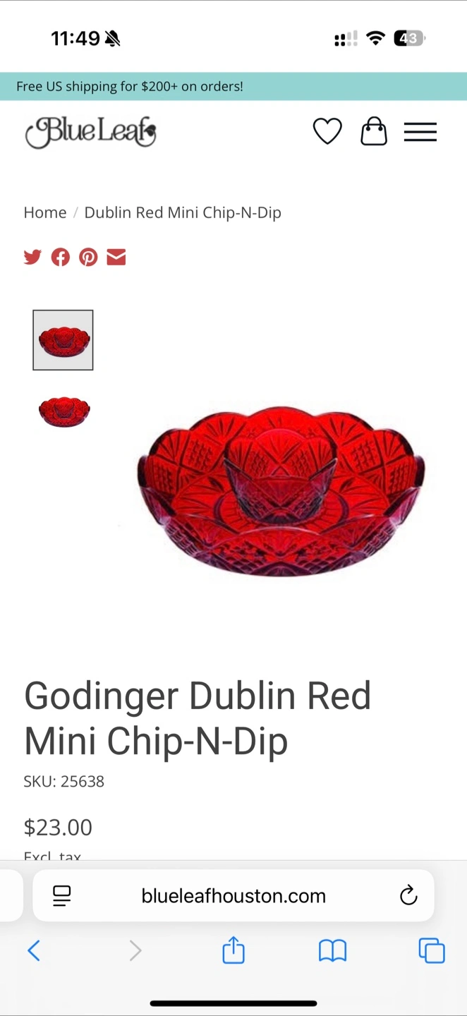 This is a new Godinger Dublin Red Mini Chip-N-Dip. It's a beautiful piece for serving snacks and dips! Originally bought for $23.00.