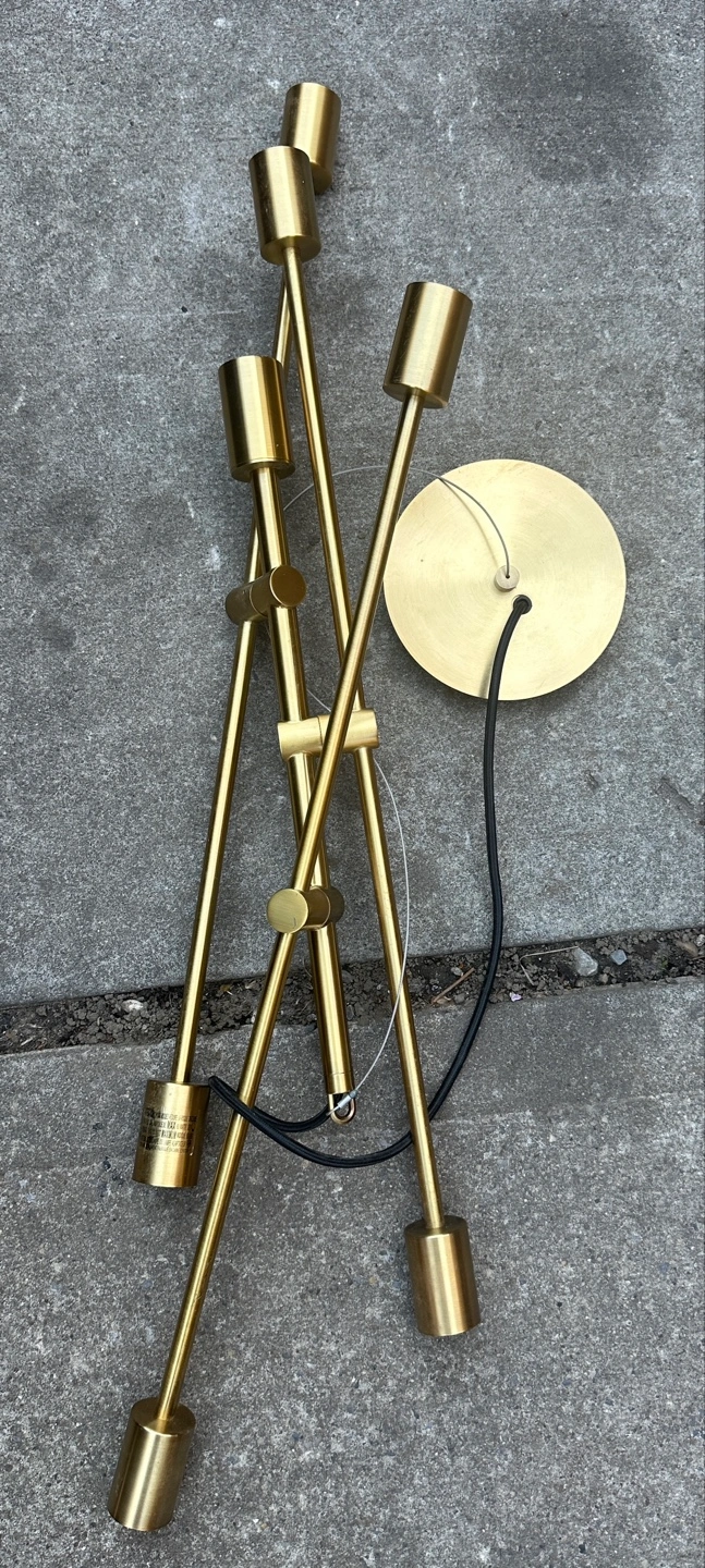 260Modern gold chandelier. 7 lights. Geometric design. Minimalist style. Perfect for dining room or living room.