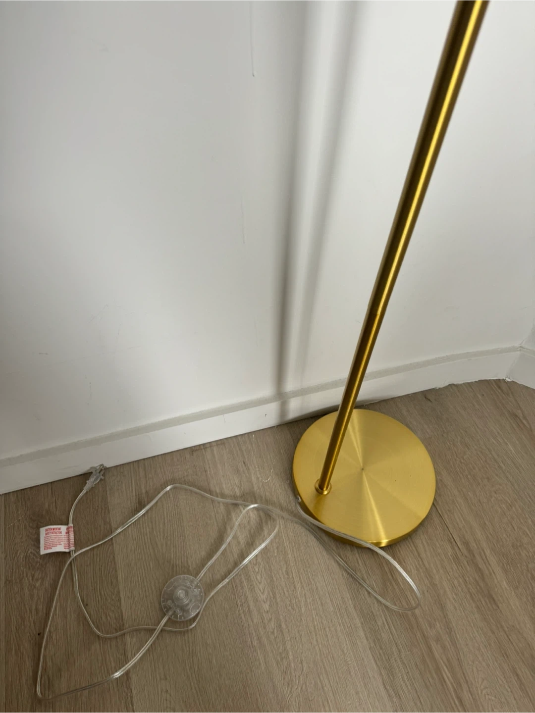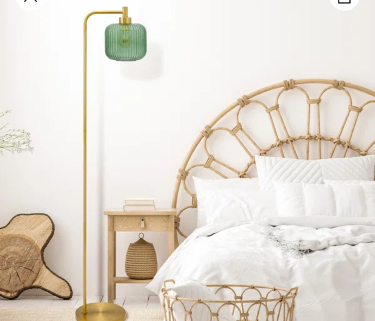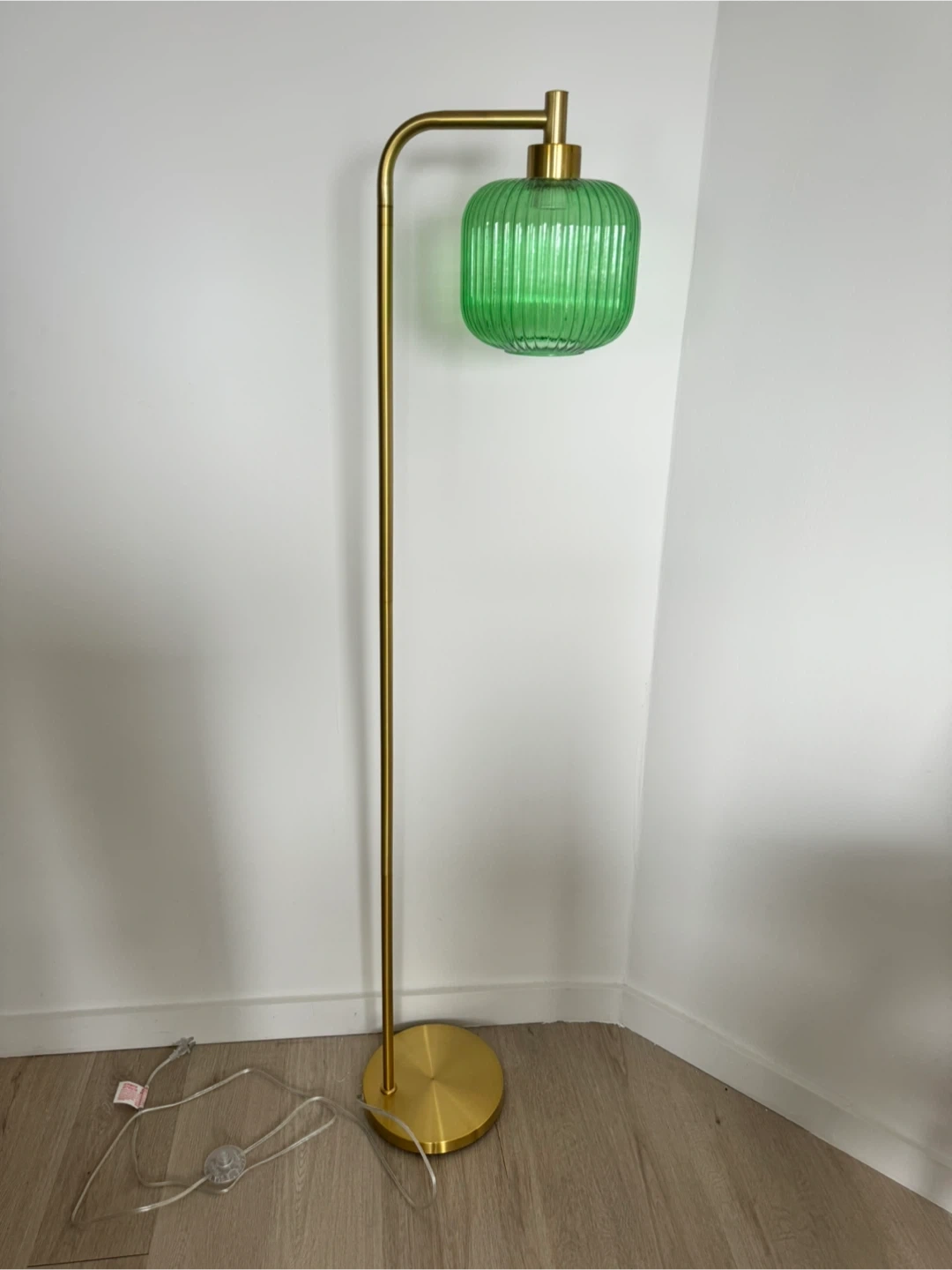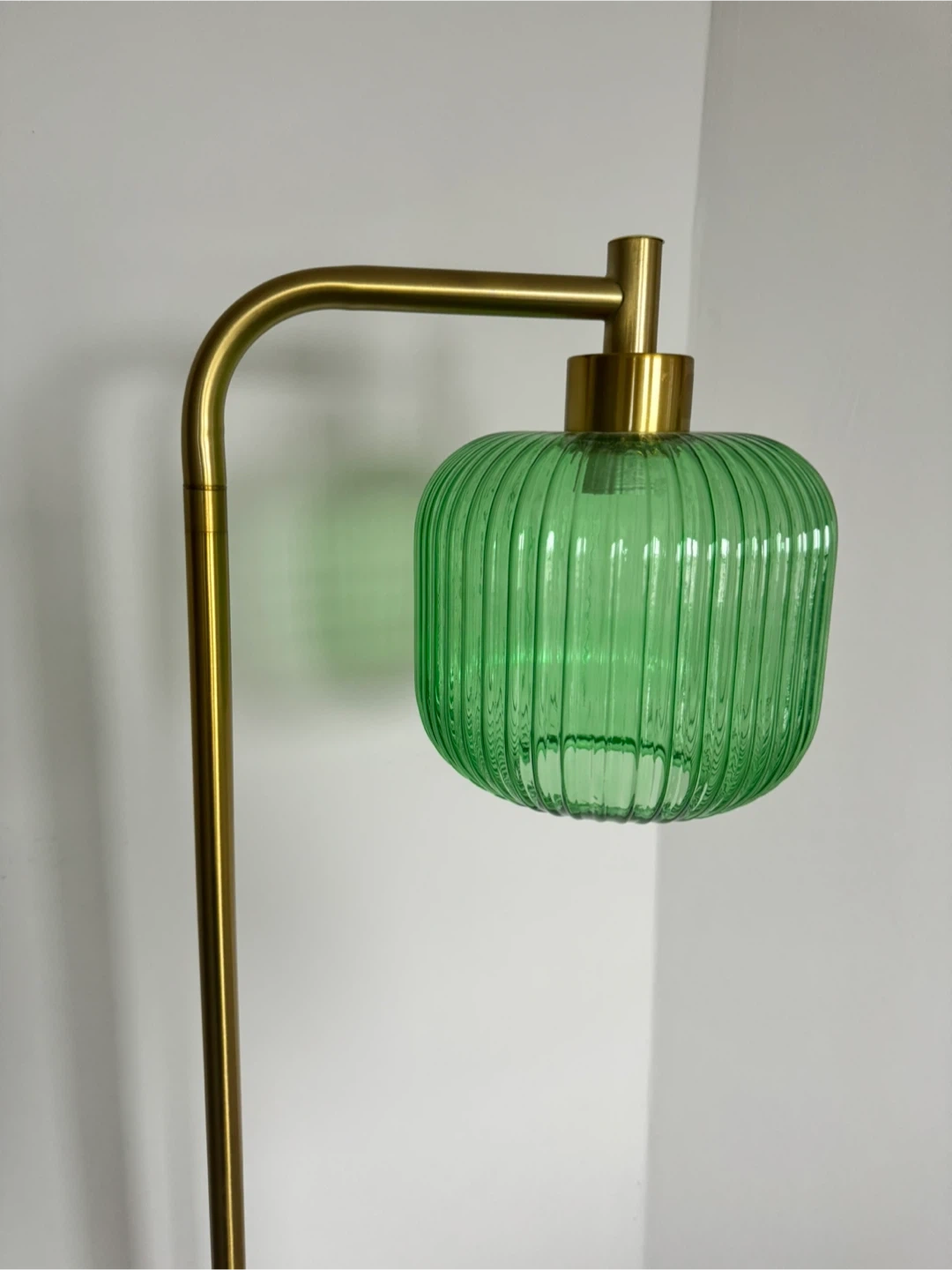 Add a touch of modern elegance to your space with this beautiful floor lamp! It features a sleek gold finish and a unique green glass lampshade that provides a warm and inviting glow