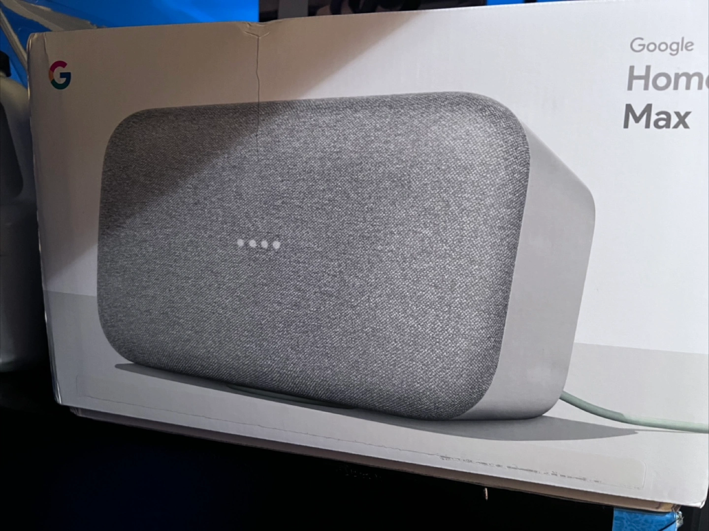 Selling a Google Home Max speaker. It's in great condition and comes with the original box. This speaker delivers amazing sound quality and is perfect for filling any room with music. Get ready to enjoy your favorite tunes with this powerful smart speaker!