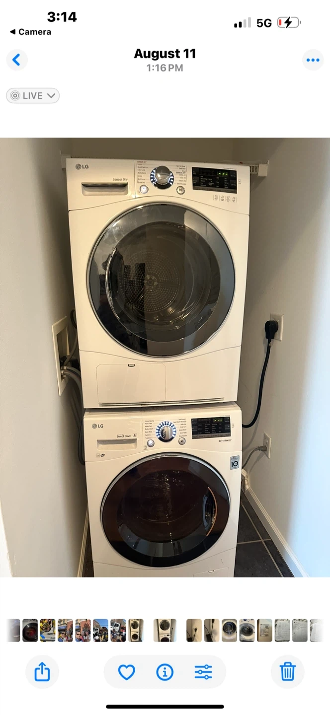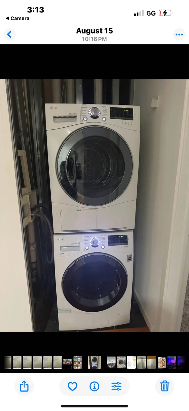 Selling an LG stackable washer and dryer set. It's in very good working condition and ready for a new home! Great for saving space in smaller apartments or laundry rooms. Feel free to reach out if you have any questions or would like to see it in person