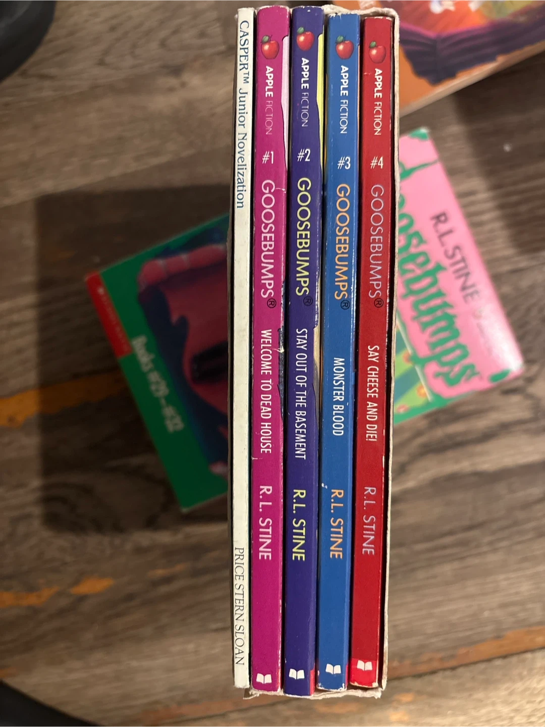 Selling a set of Goosebumps books by R.L. Stine, including books #1 through #4. Perfect for young readers who love a good scare! These books are part of the Apple Fiction series and are published by Scholastic. Get ready for some spooky fun!