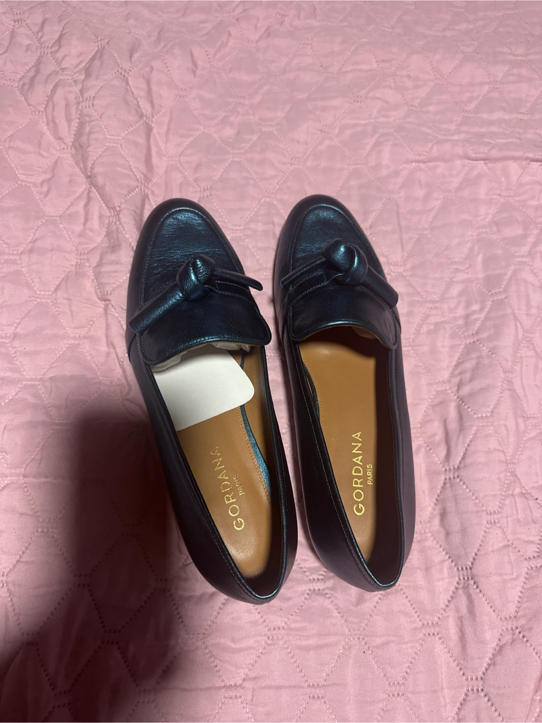 These are a pair of Gordana Paris blue leather loafers. They look to be in great condition and ready for a new home!
