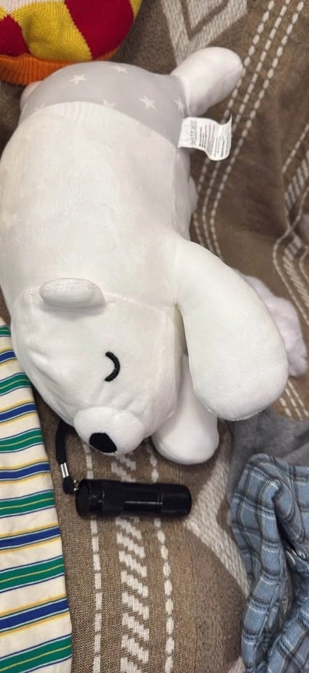 Baby clothes and toys. The sweater and striped t-shirt are large. The sweatshirt fits a small or snug medium. Toys have minor teeth marks and will be washed. Includes one cap (6.2 in x 4.7 in). UV torch needs batteries. Make an offer. Pick up near 105 Ave, Surrey.