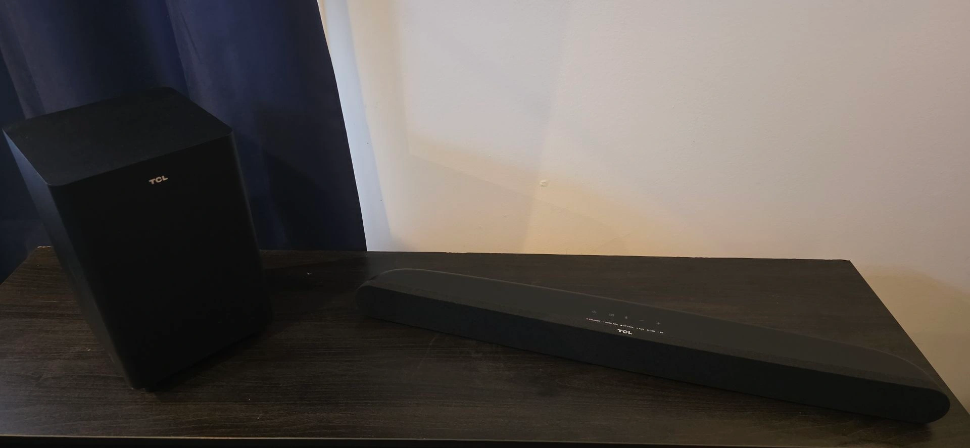 Dolby Digital Audio. Roku TV Ready™ for quick, hassle-free setup and use. Wireless subwoofer for pulse-pounding bass. Loud, clear sound in a compact design. Specially tuned to deliver distortion-free sound at any volume. Specialized Sound Modes bring movies, music, and TV to life. Quick, hassle-free setup. Inputs: HDMI ARC, Aux/Audio (3.5mm), Optical, USB. Brand: TCL.