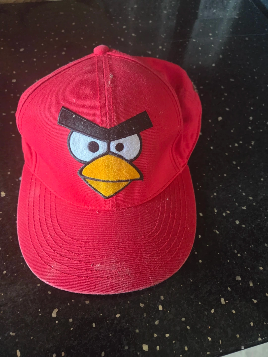 This is a red baseball cap featuring the iconic Angry Birds character. It's a fun accessory for fans of the game. The cap is made of durable fabric. Perfect for everyday wear!