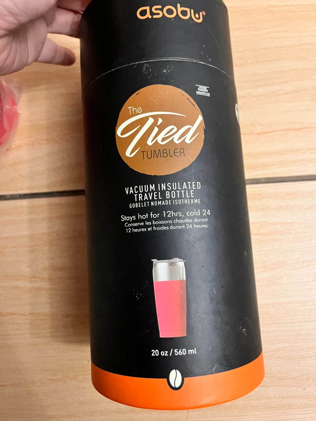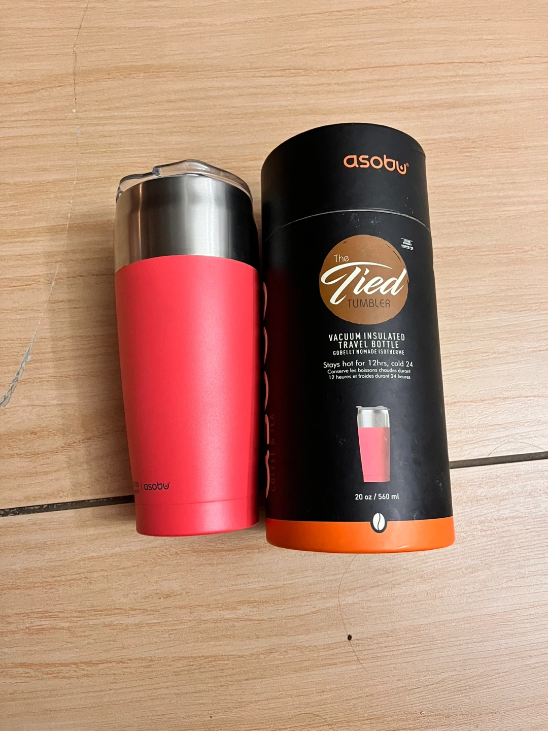 Brand new Asobu Tied Tumbler for sale! It's vacuum insulated to keep your drinks hot for up to 12 hours or cold for up to 24 hours. It holds 20 oz / 560 ml and comes with the original box. Perfect for gifting.