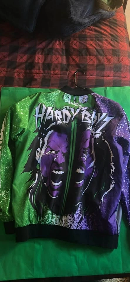 WWE Hardy Boyz Bomber Jacket w purple & green sleeves