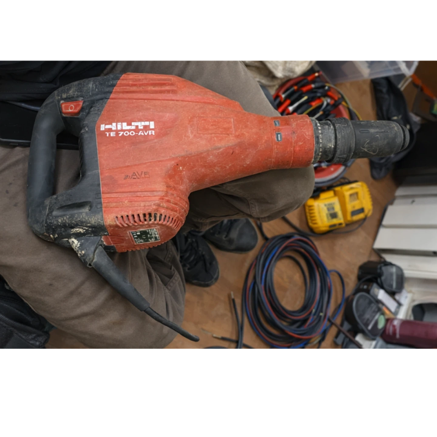 This is a Hilti TE 700-AVR demolition hammer. It's a powerful tool for tough jobs. Made for durability and performance on construction sites. Useful for breaking up concrete and masonry. This hammer's robust design ensures it can handle demanding tasks.