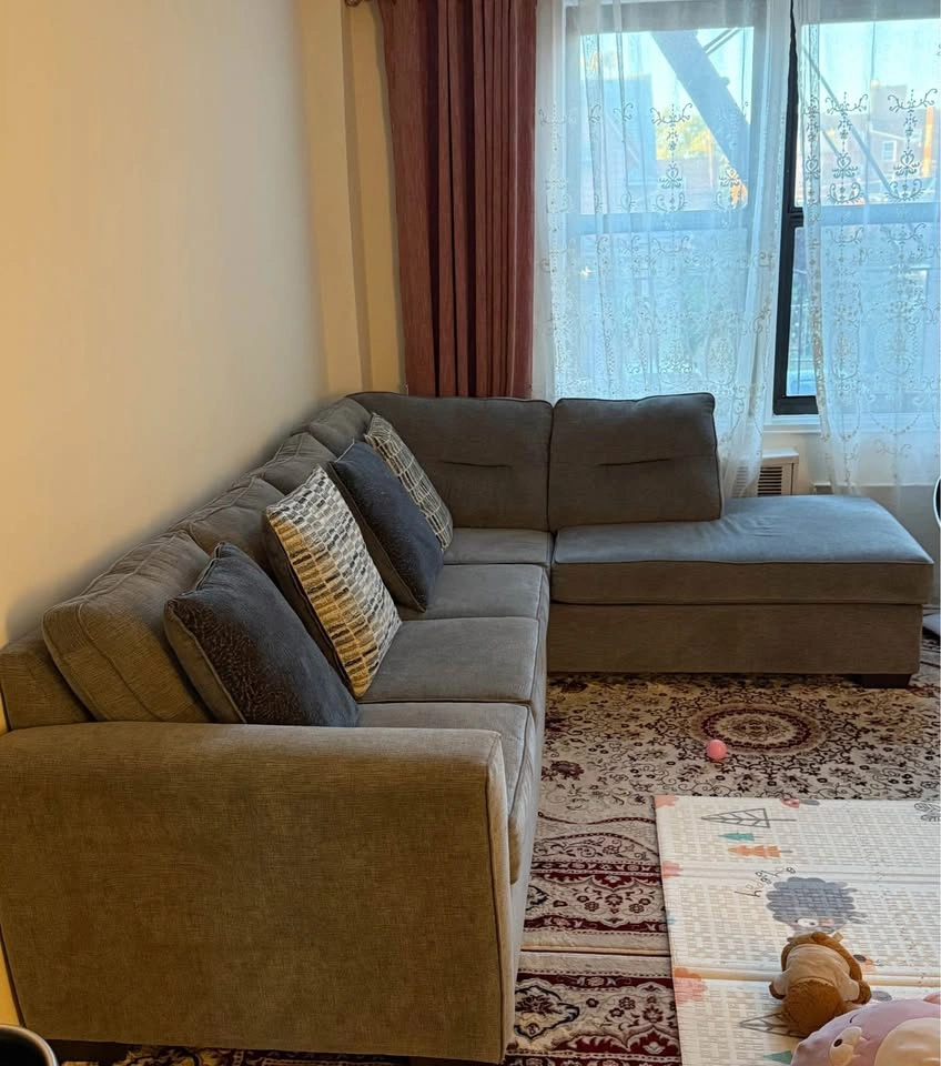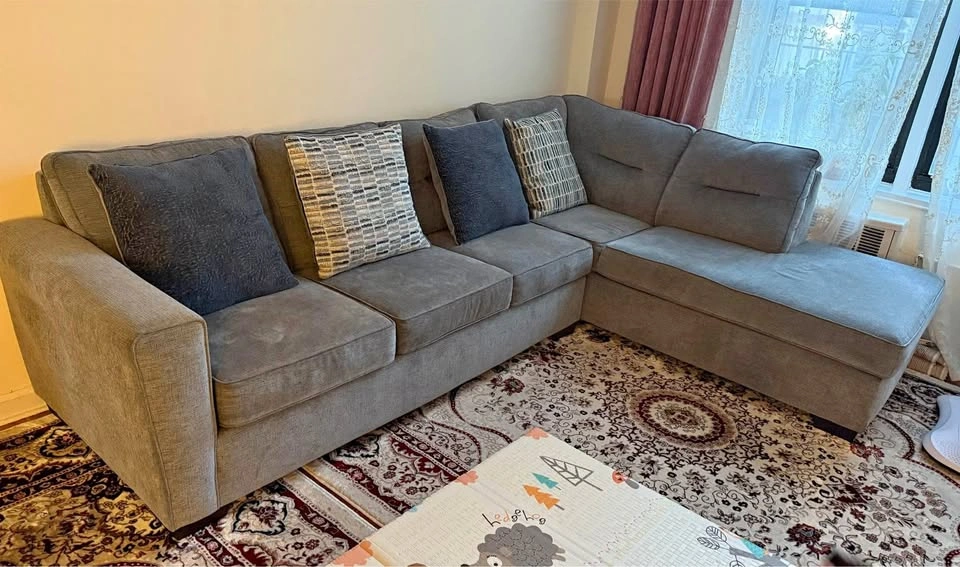 10Selling a modern gray sectional sofa purchased from Bob’s Furniture. Used gently for only 1 year, in a non-smoking 🚬🚫, pet-free 🐶🚫 home. Sofa is in excellent, like-new condition — very clean, no stains or damage. ✅ Comes with 4 matching pillows ❌ No storage or pull-out bed — this is a regular sectional sofa 📏 Comfortable seating for the whole family, perfect for living rooms or apartments Original price: $1,500 Asking: $800 Pickup in Brooklyn, NY (11229).
