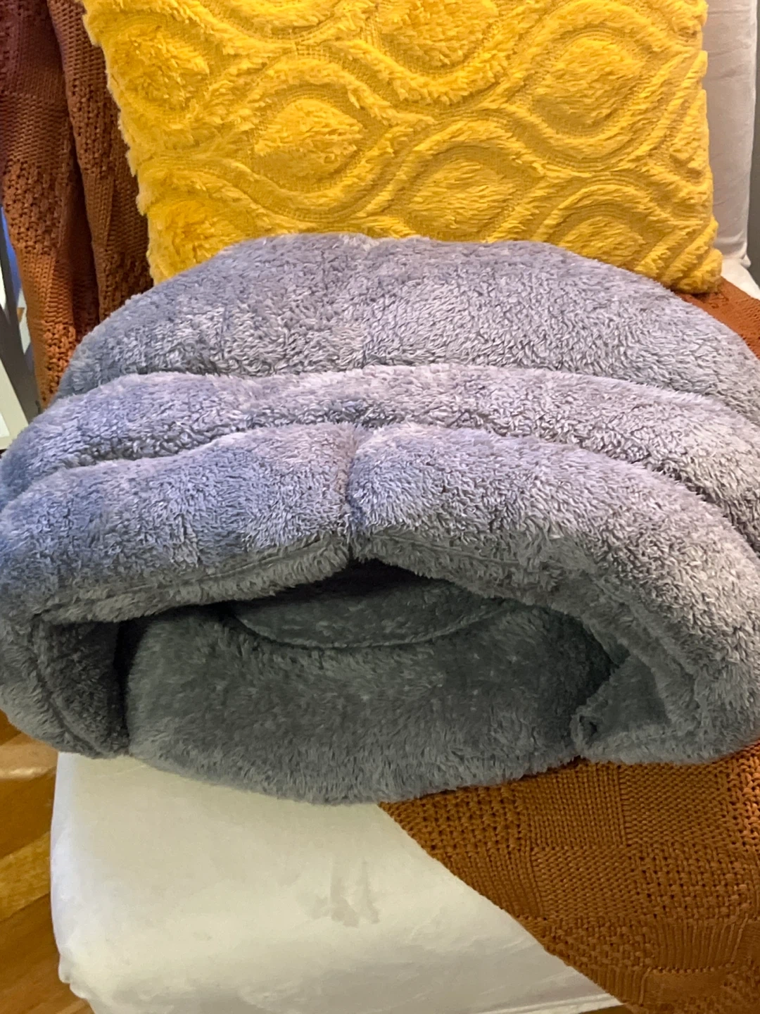 Selling a cozy gray plush pet bed! It's in great condition and ready for a new furry friend. The plush material is so soft and inviting, perfect for naps and relaxation