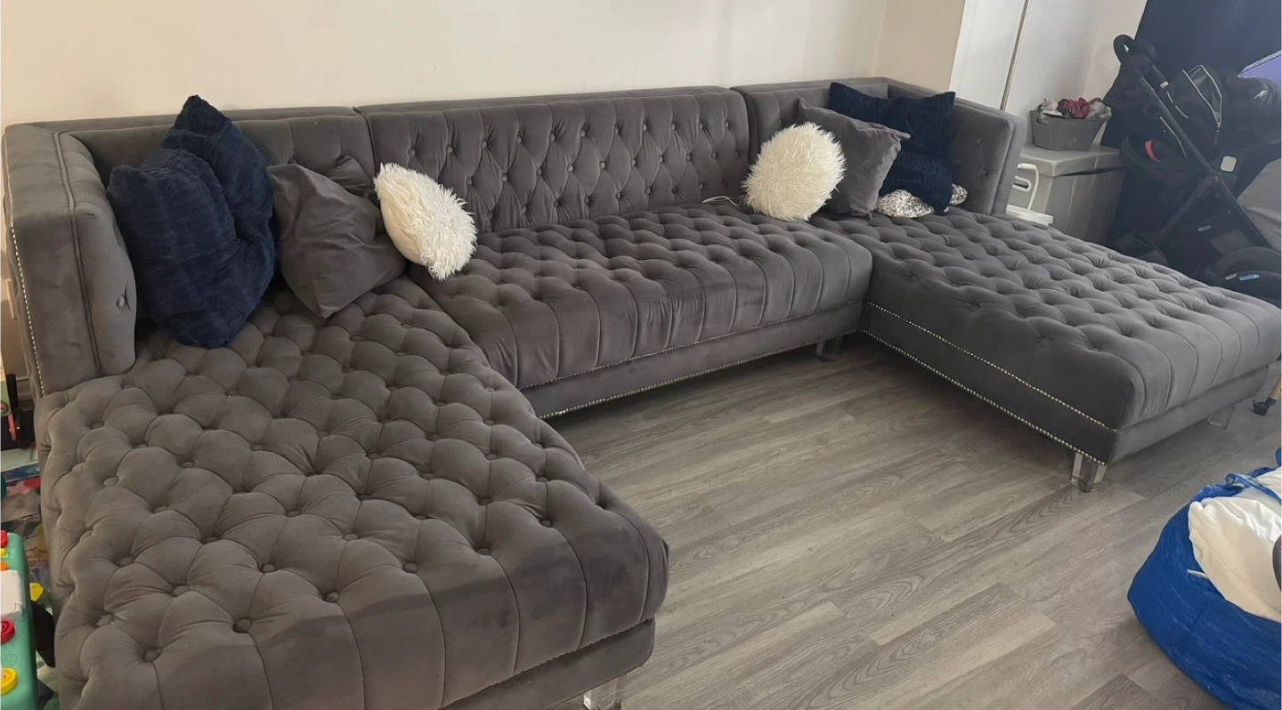 Gray Tufted Sectional Sofa
