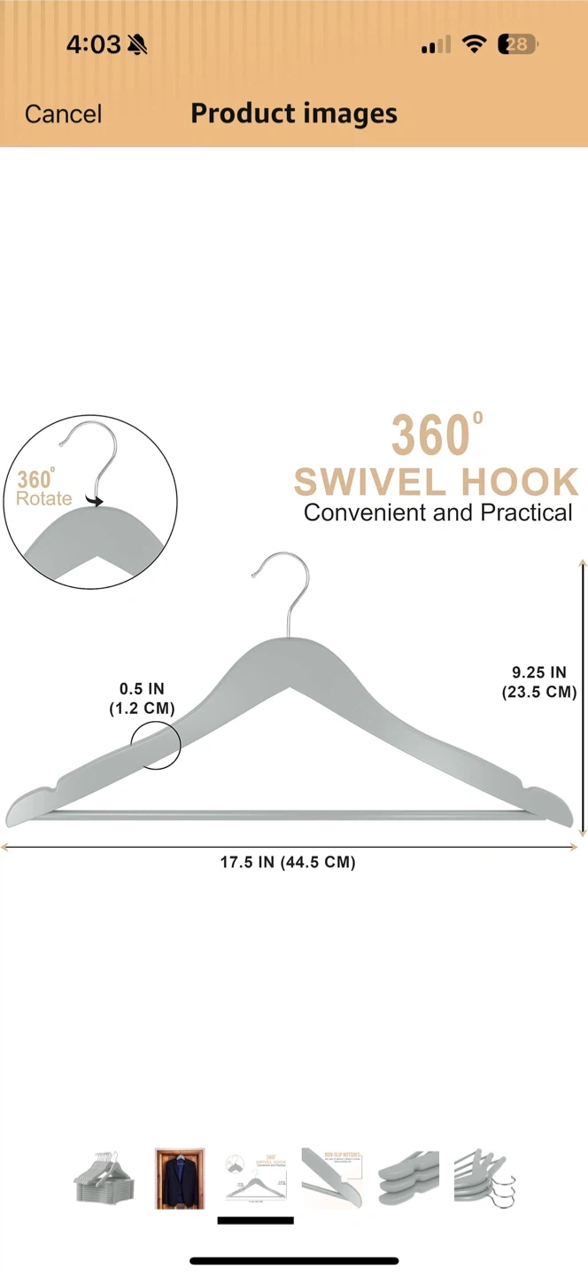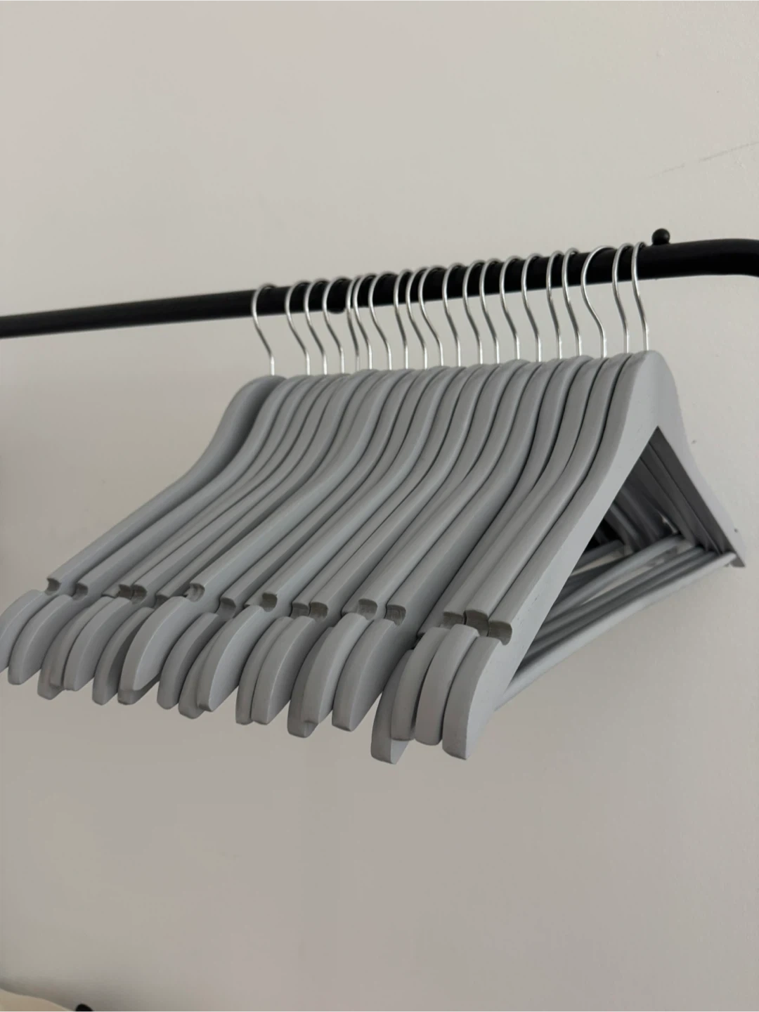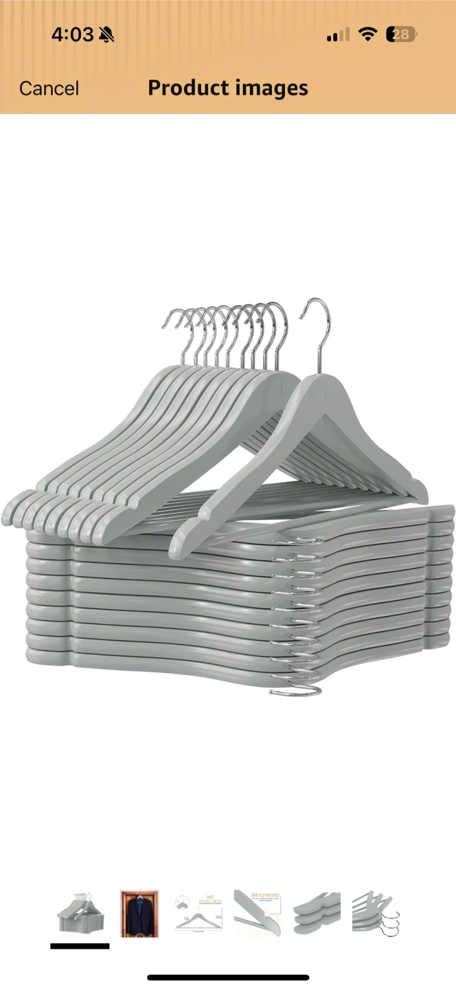 81Selling a set of 20 gray wooden clothes hangers! They feature a 360° swivel hook for convenience and practicality. Each hanger measures approximately 17.5 inches (44.5 cm) in length and 9.25 inches (23.5 cm) in height. Pick up in fidi, cash or Venmo