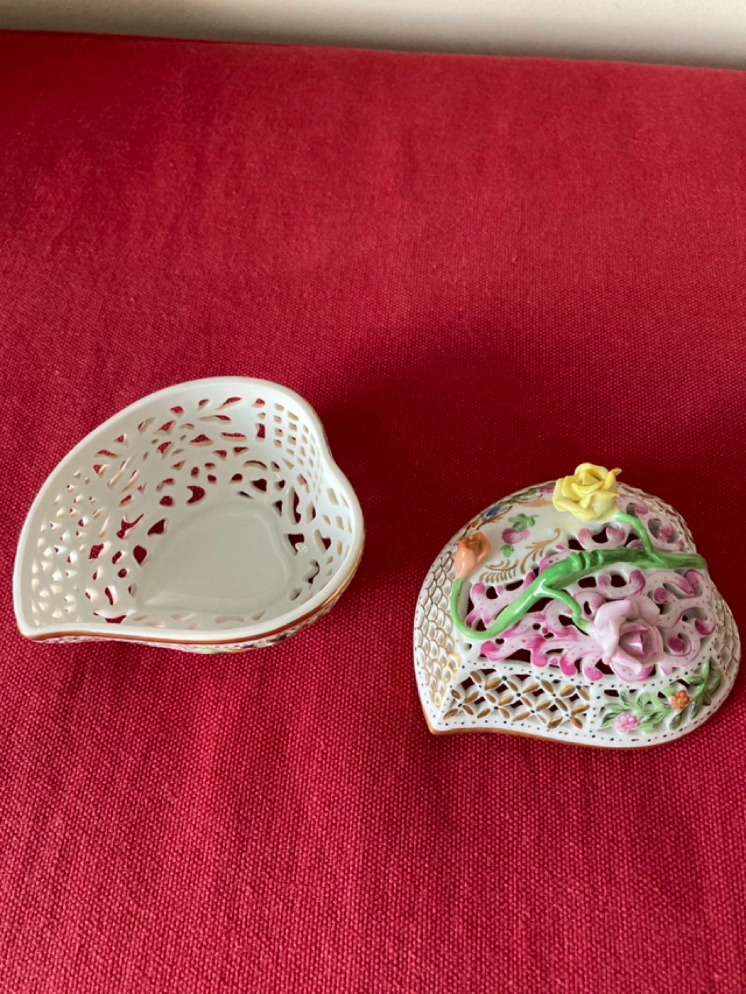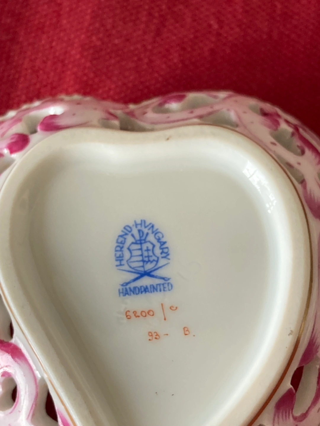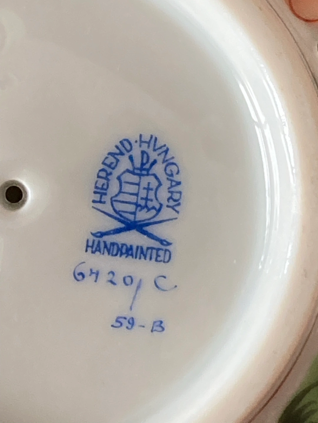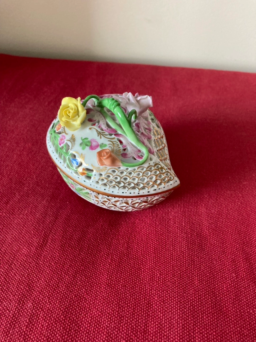114Hand painted 24 kt gold rimmed 5.5" long trinket from the prestigious Herend collection.