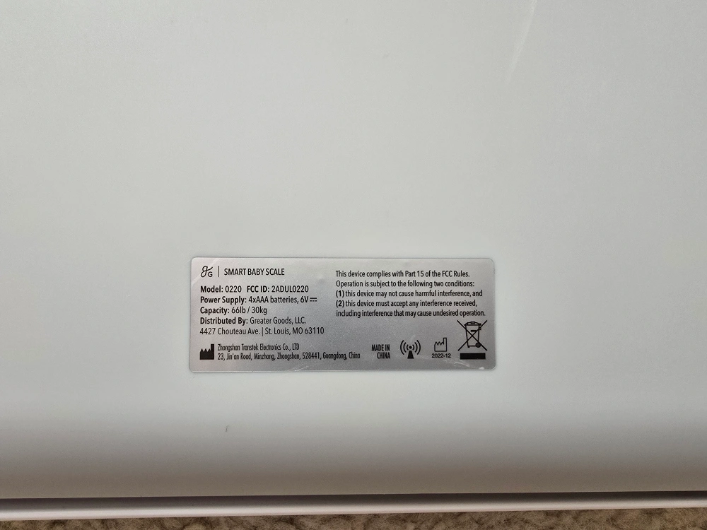 118Selling a Greater Goods Smart Baby Scale. This scale has a capacity of 66lb / 30kg and requires 4 AAA batteries for power. Connects to your phone and you can monitor the weight through the app. Manufacturing date is Dec, 2022. The tray is removable. Can be used with babies or pets.